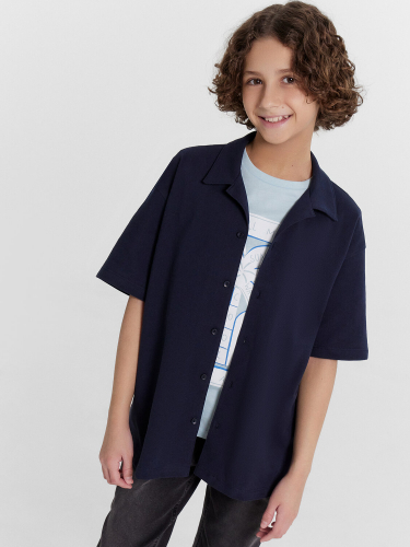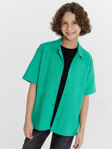 Сорочка верхняя для мальчиков прямого силуэта с воротником. По переду обработана застежка на пуговицы и петли. Диаметр пуговицы 1 см, 4 прокола. Рукава короткие, втачные, слегка спущены. На спине кокетка. Нижние срезы изделия и рукавов обработаны швом в подгибку.