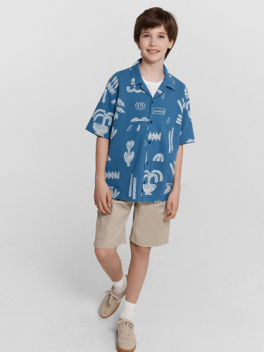 Шорты карго прямого силуэта из текстильного полотна. Посадка средняя. Длина выше колена. Пояс цельнокроеный с эластичной тесьмой и шнуром внутри. По поясу выполнены три декоративные строчки. На передних деталях брюк настрочен один карман с клапаном, обработаны карманы с наклонным входом от боковых швов. Низ изделия обработан швом в подгибку.