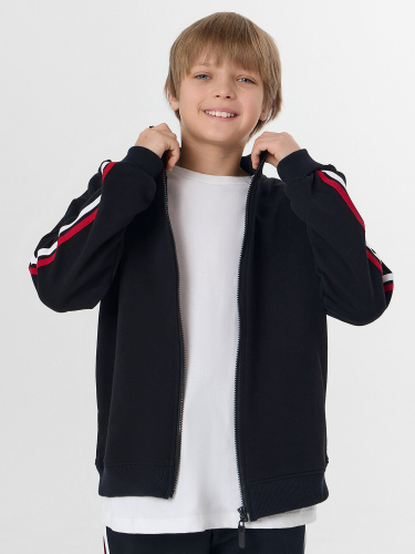 Горловина круглая с воротником стойкой из рибаны. Рукава втачные длинные по верху рукава настрочены лампасы из кулирки. По низу отрезные манжеты из рибаны.