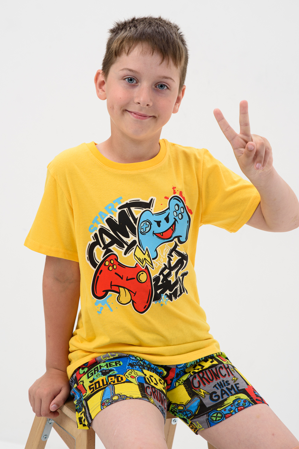 Пижама для мальчика, состоящая из футболки - однотонное полотно с нанесением печати и шорт - полотно с рисунком, выполнена из мягкой, приятной к телу трикотажной ткани средней плотности, 100% хлопок. Пижамка согревает, даже если ребенок ворочается и раскрывается во сне, а также создает ощущение уюта, ребенок спит глубже и реже просыпается. Также стильная пижама для подростков создает хорошее настроение. Можно носить как домашний костюм или использовать как летнюю пижаму, для дома или в садике. Пижамный костюм без карманов для полного комфорта во сне и застежек, свободного полуприлегающего силуэта, для комфортного сна ребенка. Пижамные шорты с удобной посадкой и нетугой резинкой. Яркий и модный молодежный пижамный стиль для детей и подростков, пижама для мальчика подростка. Цвет: оранжевый; Материал: кулирка;кулирка; Состав: 100% хлопок.
