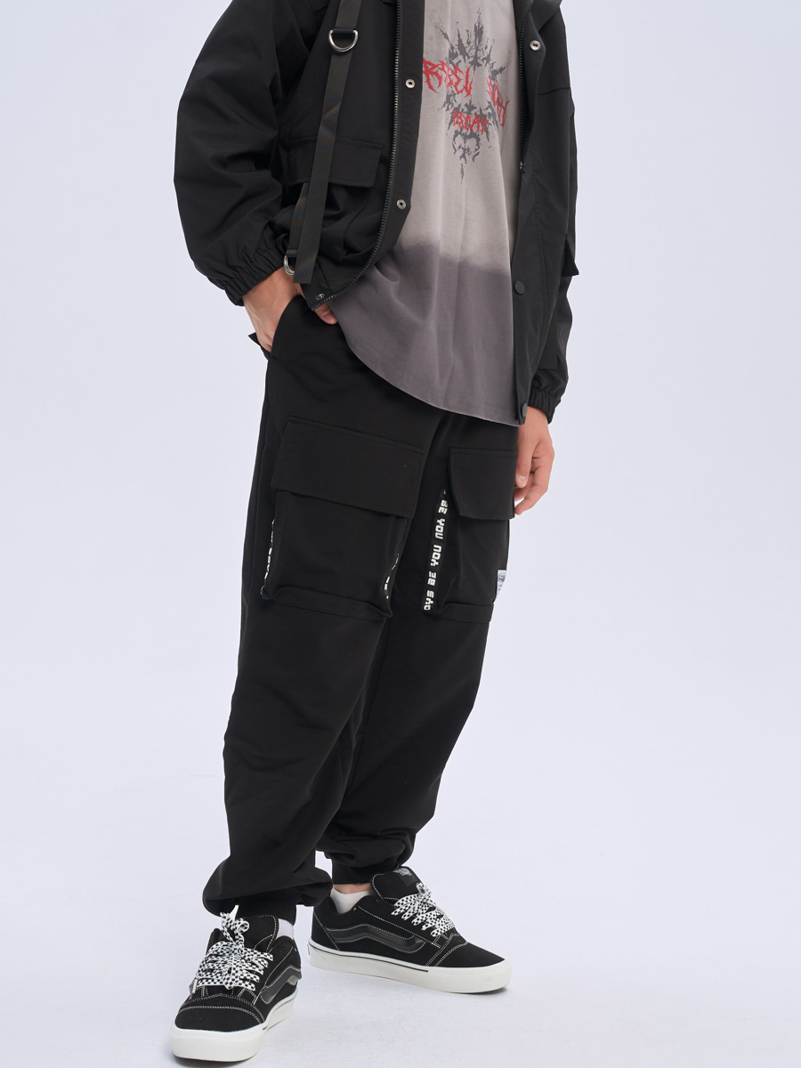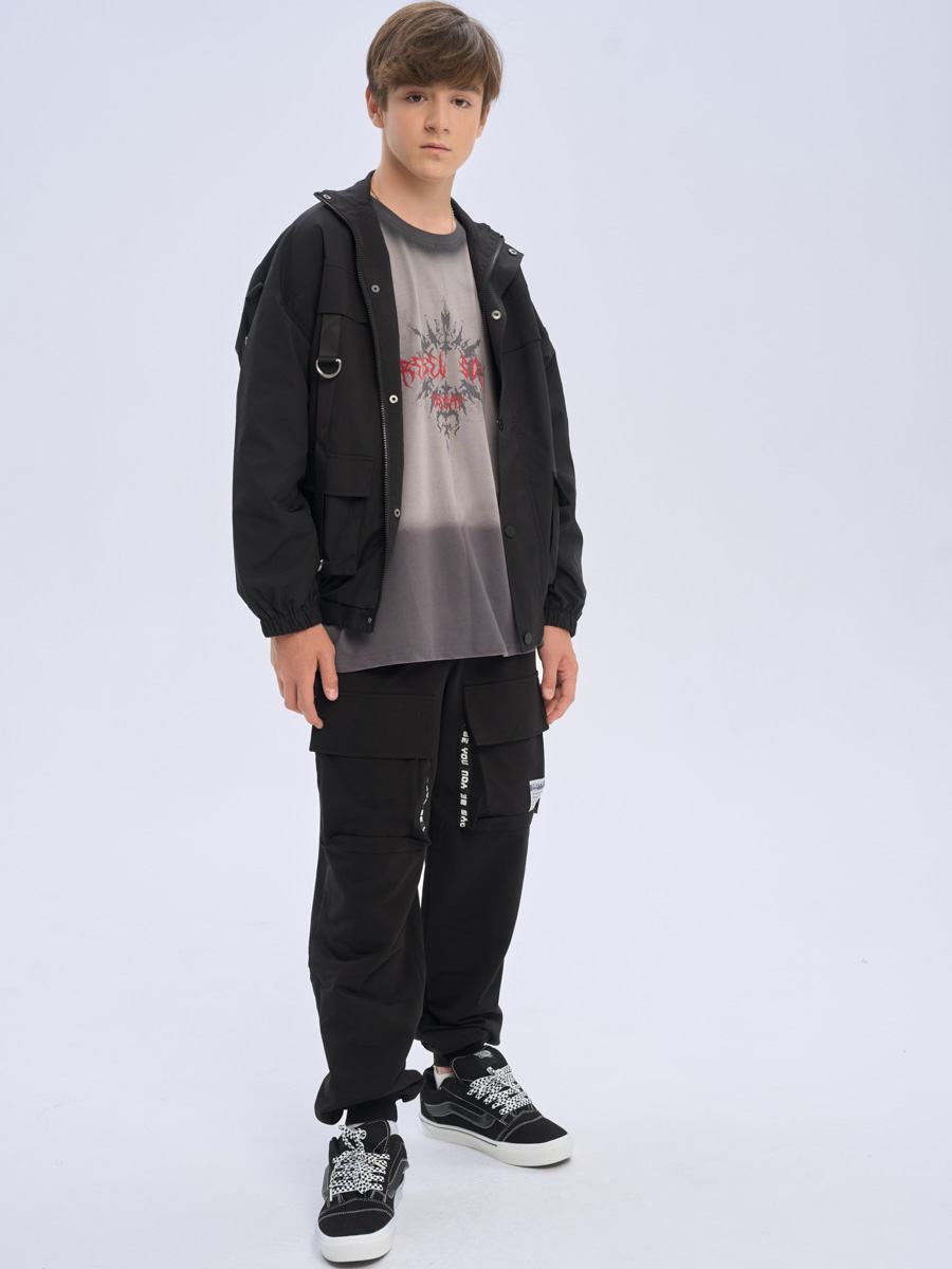 Брюки-джоггеры свободного кроя из футера 2-х нитки с лайкрой, эластичный пояс, манжеты, карманы в боковом шве, прямоугольные карманы с клапанами на передней половинке.