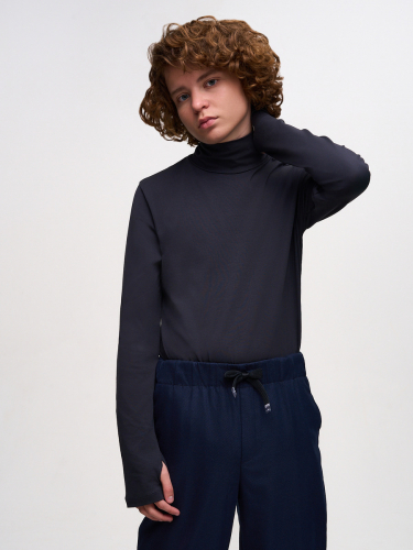 Пояс брюк отрезной из хлопкового кашкорсе пл. 360 г/м2 на резинке; на изнанке пояса слева пробита петля для регулировки резинки. Низ брюк обработан широким эластичным швом в подгибку с нижним застилом. Ширина брючин по низу регулируется шляпной резинкой с фиксатором.