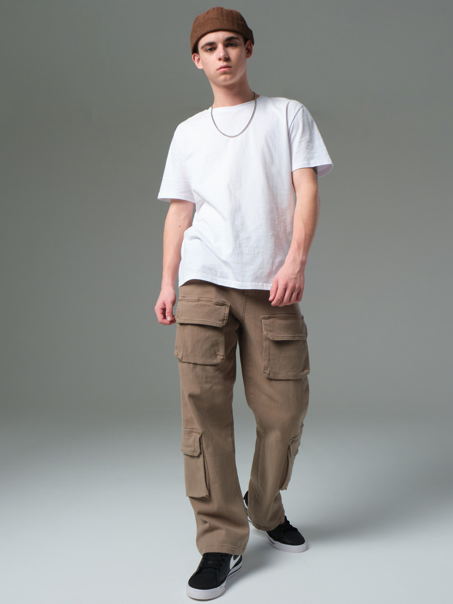 Брюки карго свободного кроя из облегченной экологичной хлопковой твиловой ткани стрейч со средней посадкой с шестью карманами: четыре объемных накладных кармана-портфеля с клапанами и два боковых кармана. Застежка на молнию, пояс со шлевками для ремня регулируется внутренней резинкой с фиксацией на пуговицу. Вся наша продукция сертифицирована и соответствует высочайшим стандартам качества, наша компания является участником программы "Бережливое производство"