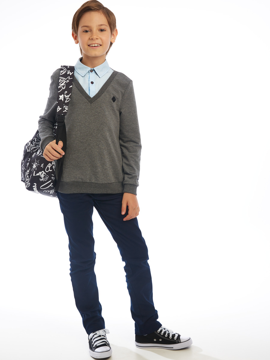 Джемпер-обманка для мальчика из трикотажного полотна и текстиля с длинными втачными