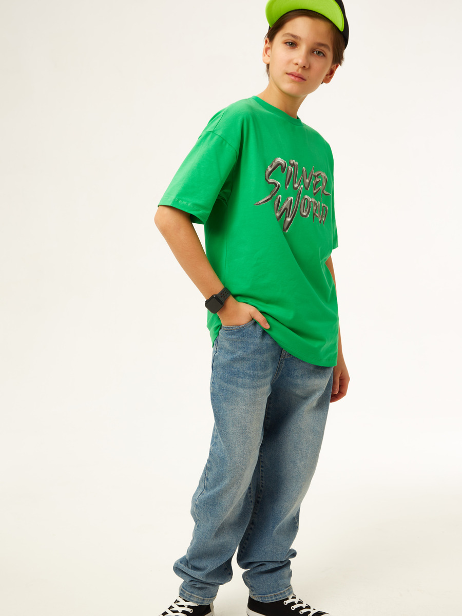 Футболка оверсайз для мальчика удлиненная из плотного экологичного полотна премиум класса кулирной глади с лайкрой . С коротким рукавом и спущеным плечом .Износостойкий принт на полочке. Наши изделия не закатываются , не садяться и не линяют . Держит форму держать после стирки . Соответствуют ГОСТу и нормам СаНПиНа.
