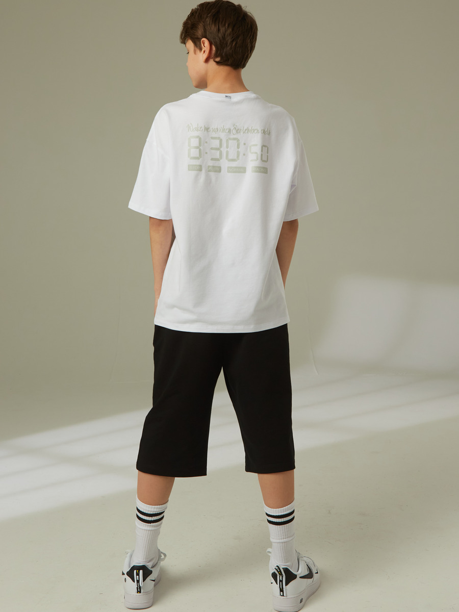Комплект спортивный для мальчика: футболка и шорты. Футболка свободного силуэта с короткими втачными рукавами. Шорты прямые на поясе с резиновой тесьмой и шнуром.