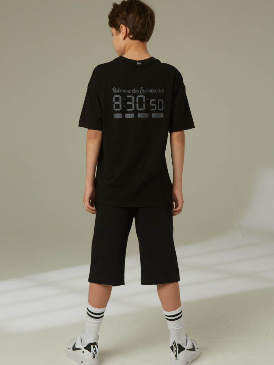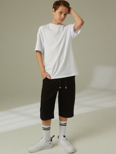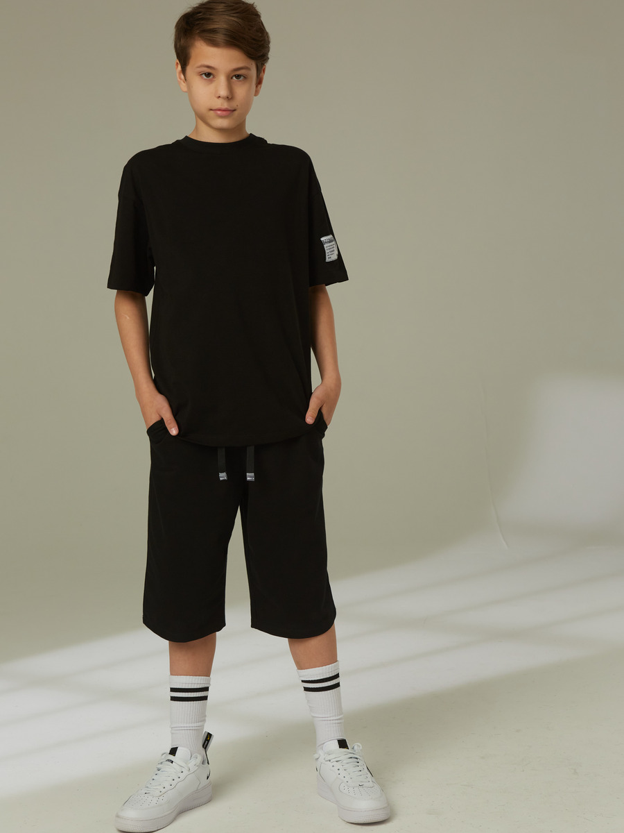 Комплект спортивный для мальчика: футболка и шорты. Футболка свободного силуэта с короткими втачными рукавами. Шорты прямые на поясе с резиновой тесьмой и шнуром.