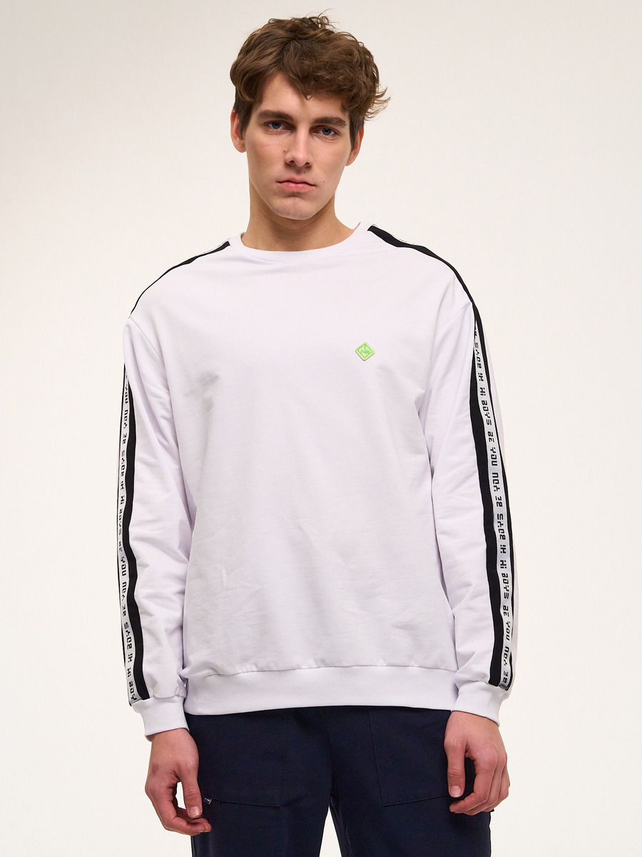 Стильная толстовка изготовлена из футера средней плотности, она очень приятная к телу и мягкая на ощупь. Свободная толстовка станет любимой вещью в гардеробе. Стильный и молодежный дизайн толстовки позволит подростку выделиться из толпы.Контрастные вставки на рукавах. Минималистичная нашивка спереди.