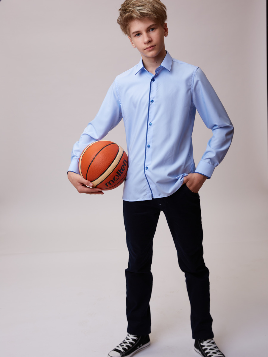 Сорочка приталенного силуэта для мальчика хлопоковая с модалом и отделкой кантом