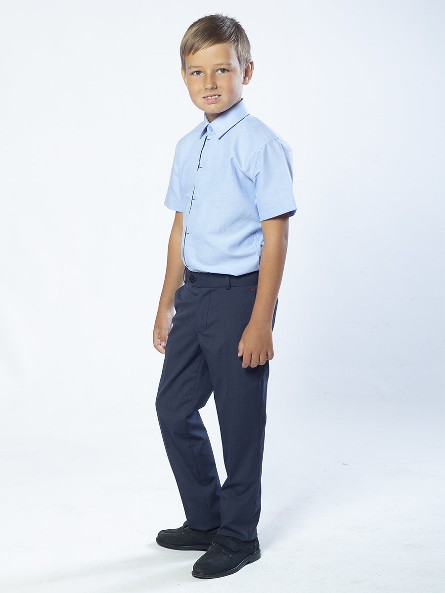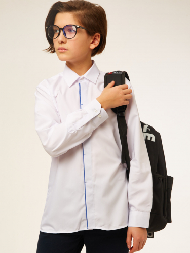 Сорочка приталенного силуэта для мальчика с синей супатной застежкой
