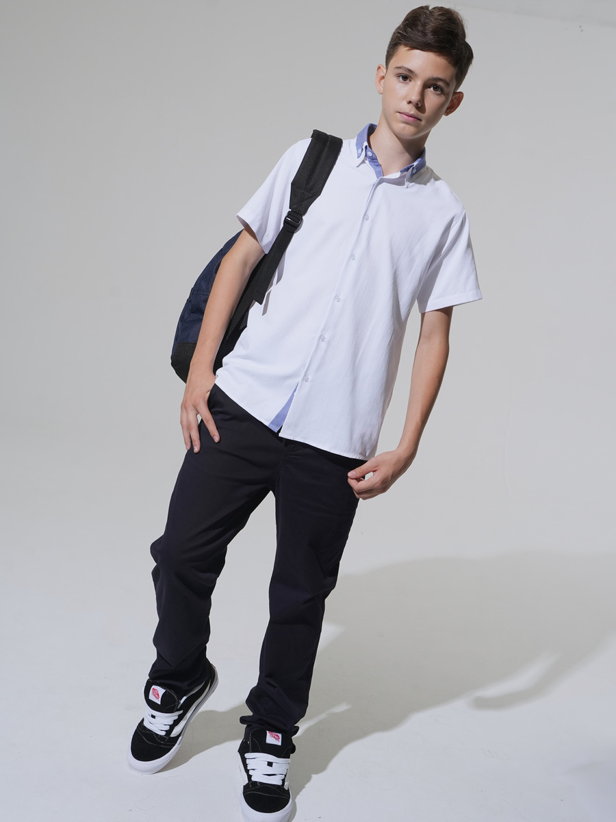 Классическая белая сорочка на пуговицах подойдет в школу, на праздник и на выпускной. Модель полуприлегающего силуэта с коротким рукавом. Модель украшена контрастным двойным отлажным воротником с контрастной внутренней стойкой и внутренней застежкой планкой. Сорочка выполнена из качественной ткани с высоким содержанием хлопка, что позволяет вашему ребенку чувствовать себя комфортно. Сорочка идеальна для гардероба как часть школьной формы, она идеально сочетается с классическими брюками. Широкий размерный ряд позволяет подобрать сорочку как для детей школьного возраста, так и для подростков. Стильня сорочка станет незаменимой вещью в гардеробе вашего сына.