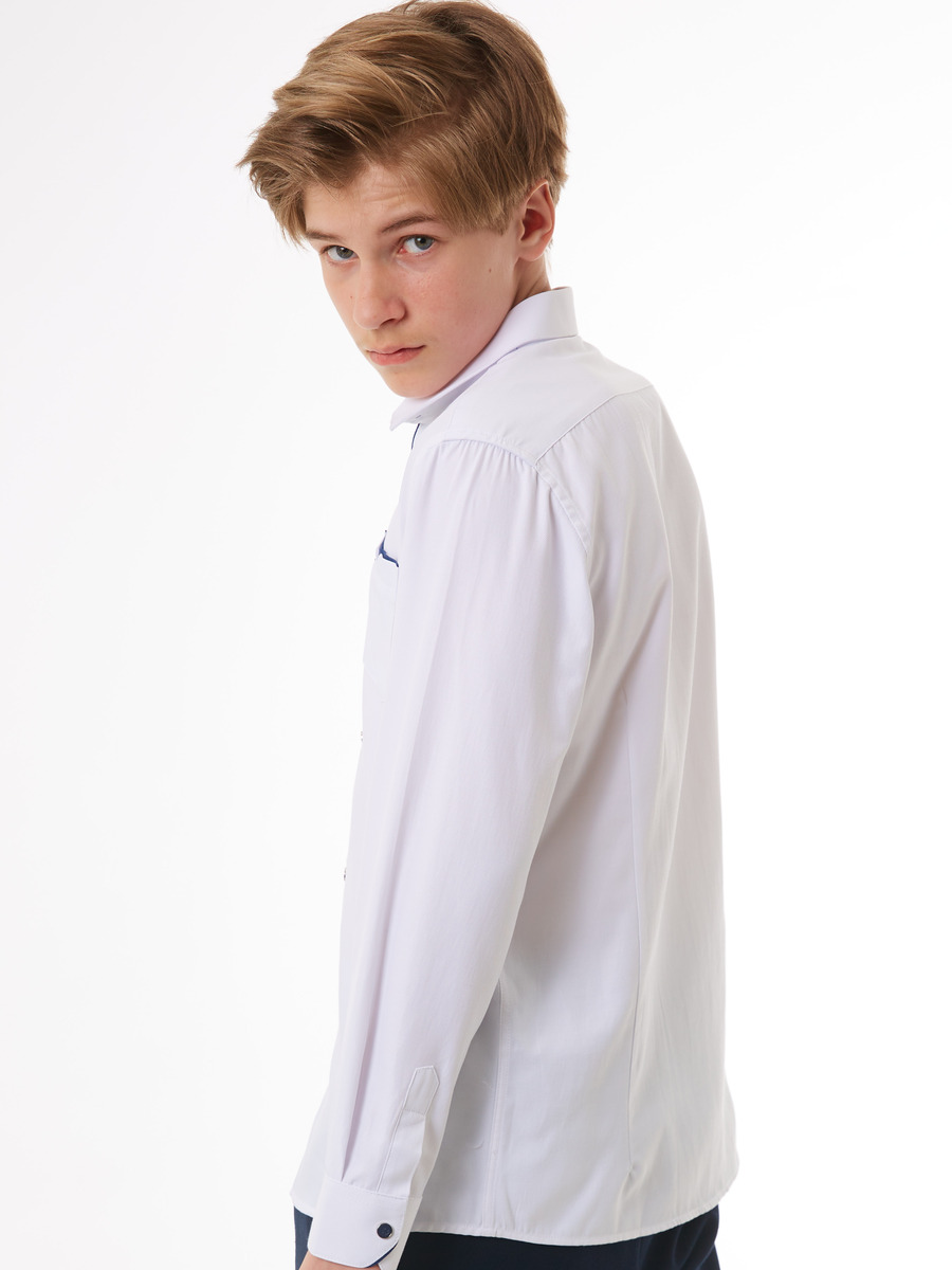 Классическая темно-синяя сорочка на кнопках подойдет в школу, на праздник и на выпускной. Модель полуприлегающего силуэта с длинным рукавом и накладным карманом. Воротник с контрастной внутренней стойкой голубого цвета, карман и край борта украшены контрастным голубым кантом. Сорочка выполнена из качественной ткани с высоким содержанием вискозы, что позволяет вашему ребенку чувствовать себя комфортно. Сорочка идеальна для гардероба как часть школьной формы, она идеально сочетается с классическими брюками. Широкий размерный ряд позволяет подобрать сорочку как для детей школьного возраста, так и для подростков. Стильня сорочка станет незаменимой вещью в гардеробе вашего сына.