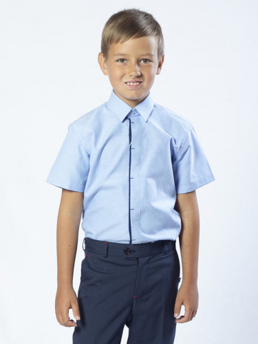 Классическая темно-синяя сорочка на кнопках подойдет в школу, на праздник и на выпускной. Модель полуприлегающего силуэта с длинным рукавом и накладным карманом. Воротник с контрастной внутренней стойкой голубого цвета, карман и край борта украшены контрастным голубым кантом. Сорочка выполнена из качественной ткани с высоким содержанием вискозы, что позволяет вашему ребенку чувствовать себя комфортно. Сорочка идеальна для гардероба как часть школьной формы, она идеально сочетается с классическими брюками. Широкий размерный ряд позволяет подобрать сорочку как для детей школьного возраста, так и для подростков. Стильня сорочка станет незаменимой вещью в гардеробе вашего сына.
