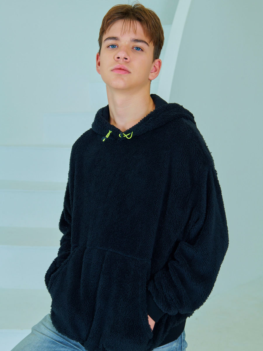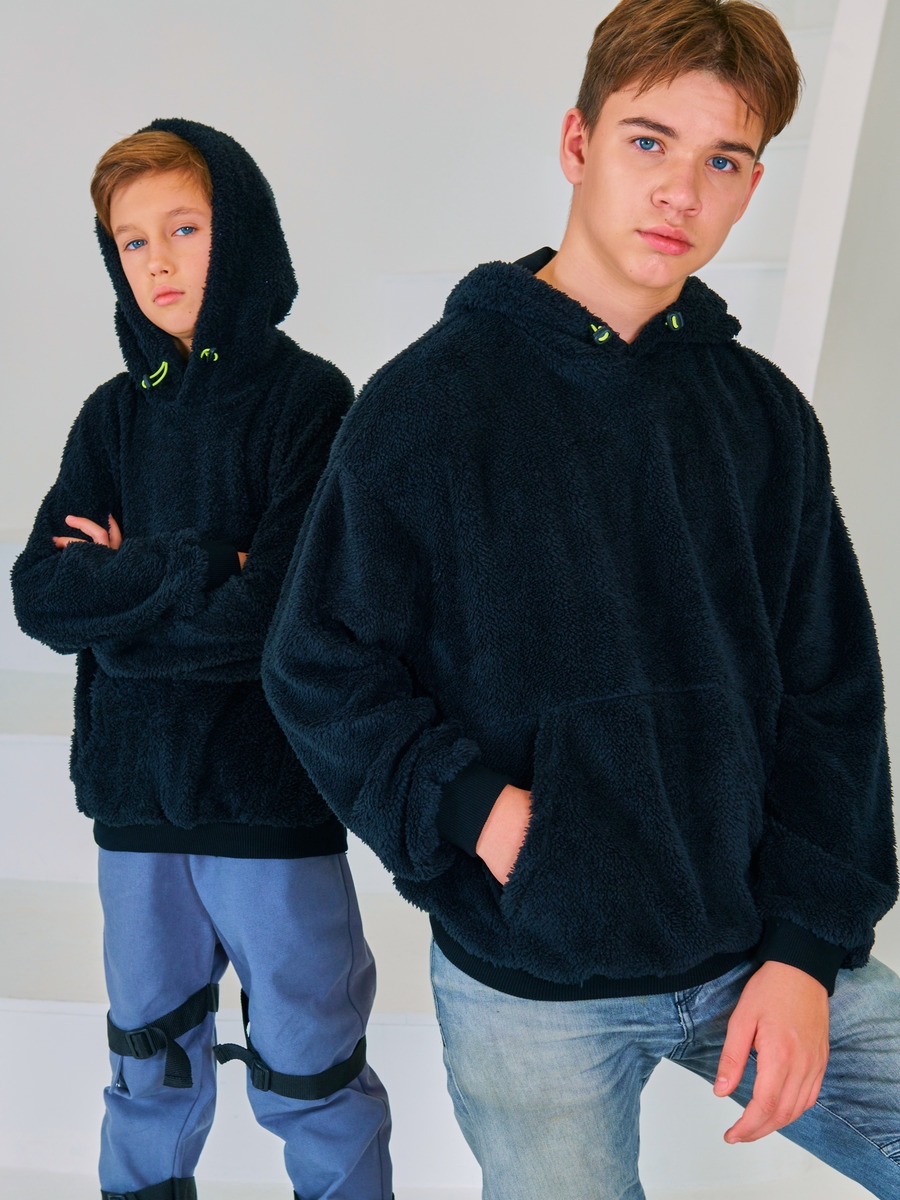 Толстовка с капюшоном свободного кроя, спущенная линия плеча, карман "кенгуру".