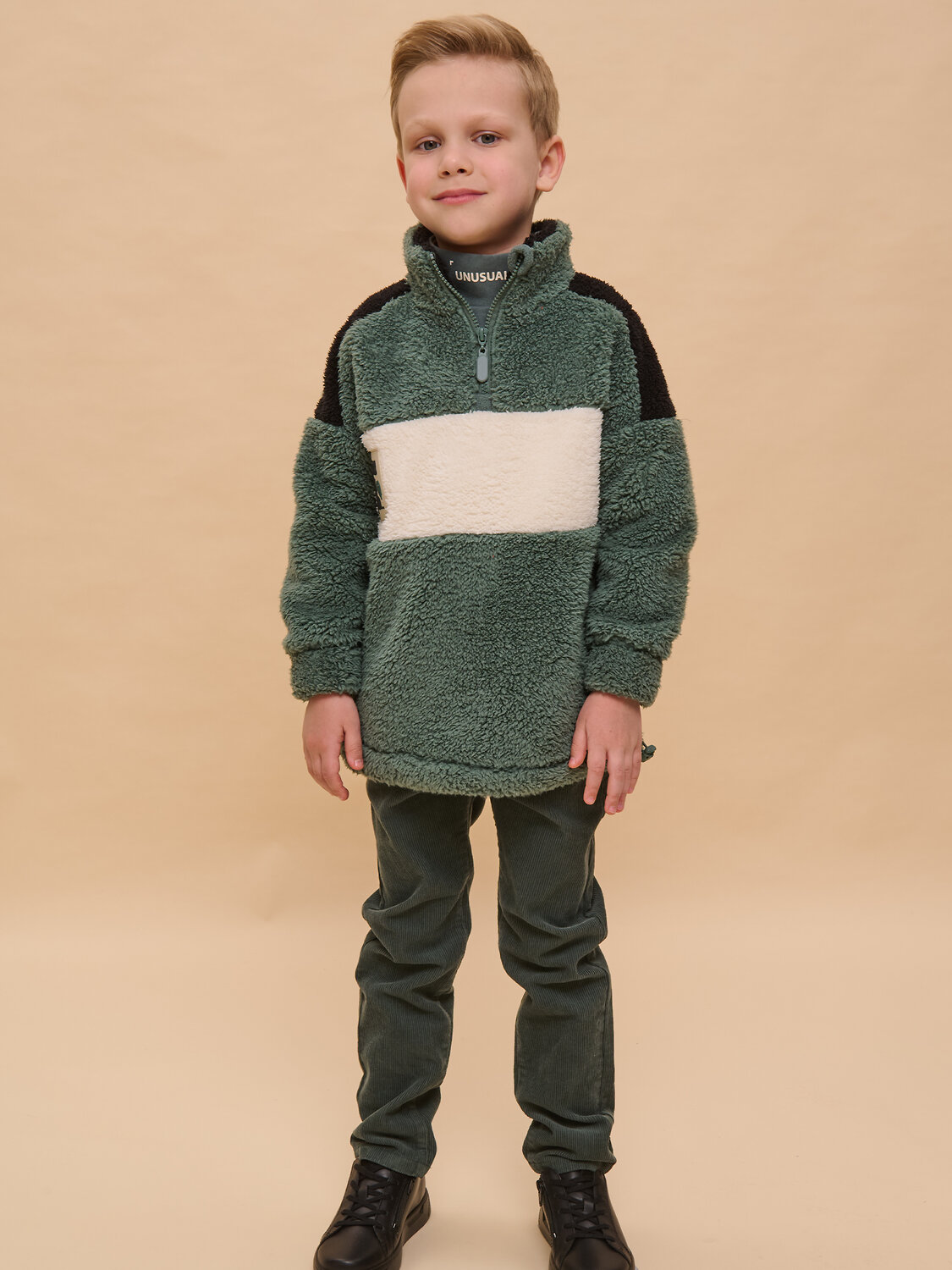 Толстовка детская для мальчиков. Трикотажная куртка увеличенного объёма из мягкого двустороннего материала бербер­флис заменит ветровку в прохладную погоду. Толстовка флисовая застёгивается на короткую молнию — актуальный модный тренд. Модель выполнена из 100% полиэстера — она лёгкая, мягкая, износостойкая, просто стирается и быстро сохнет. Высокий воротник с защитным ограничителем и широкие манжеты защитят от холода и ветра. По низу куртка детская дополнена эластичным шнуром со стоперами для регулировки ширины. Толстовка для мальчика на молнии декорирована контрастными вставками по переду, плечам и внутренней части воротника. Уютная и стильная куртка для мальчика неприхотлива в уходе. Помните о правильном уходе за изделием: рекомендуется стирать при температуре не выше 30 °C, без предварительного замачивания, с изнанки. Это поможет сохранить качество и цвет куртки на длительное время. Не забывайте о выборе правильного размера. Используйте таблицу размеров на фотографии, чтобы выбрать подходящий вариант для вашего мальчика. Обратите внимание, что цвет товара на экране вашего устройства может отличаться от реального.