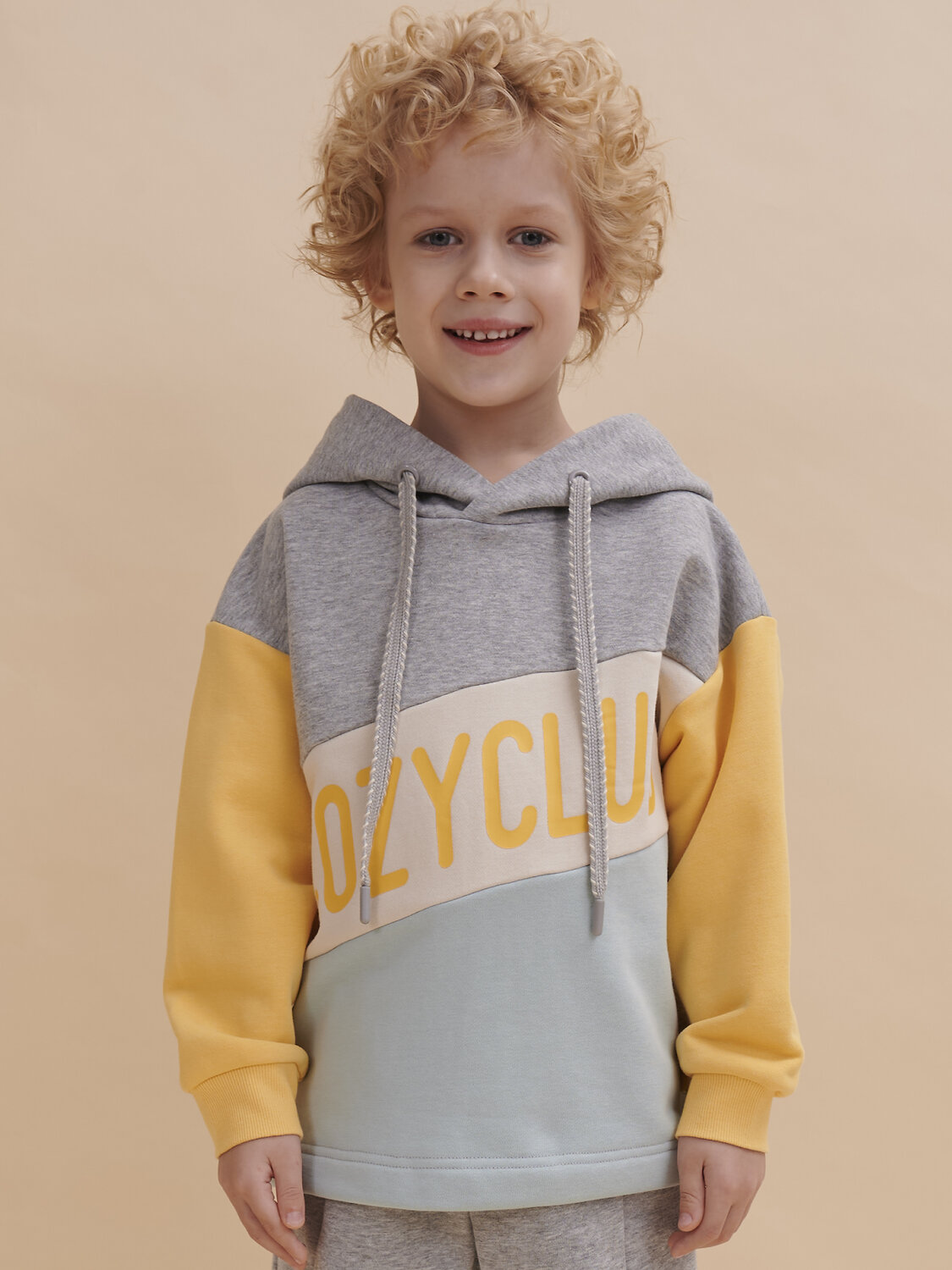 Толстовка для мальчика свободного фасона – актуальная вещь в любом сезоне. Уютное худи для мальчика с капюшоном незаменимо дома и на прогулке. Такая одежда поможет ребенку комфортно играть, гулять, ходить в садик, отдыхать на природе. Трикотажная толстовка для мальчика подростка с капюшоном выполнена с высоким содержанием хлопка и добавлением в состав эластана. Приятный к телу материал. Отлично носится, не дает усадки, не линяет в процессе стирки и сохраняет красивый внешний вид. Хлопок хорошо пропускает воздух, наделяет необходимой гигроскопичностью – ребенок активно двигается, играет, не потеет. Детское худи для мальчика пошито из материала футер-петля. Изделие свободного покроя оверсайз со спущенным плечом, углубленной проймой. Рукава на манжете из риба. Низ выполнен в подгибку и прошит плоским швом. Капюшон на запахе, с люверсами и шнурками для регулировки. Изделие выполнено в актуальном стиле колорблок в мягкой, нежной ретро-пастели. Худи для мальчика подростка оверсайз в сером цвете украшено по переду вставкой из основного материала контрастного цвета с текстовым принтом: "Cozy Club" - перевод "Уютный клуб". Толстовка оверсайз рассчитана на возраст садика и школы. Понравится как малышам, так и школьникам и подросткам. Размерная линейка: 1 (86): 2 (92): 3 (98): 4 (104): 5 (110): 6 (116): 7 (122): 8 (128): 9 (134): 10 (140): 11 (146). Худи для мальчика - отличный подарок для сына, внука, братика, племянника, крестника! Выбирайте нужный размер по таблице размеров на фото. Цвет товара на экране вашего устройства может отличаться от цвета изделия вживую.