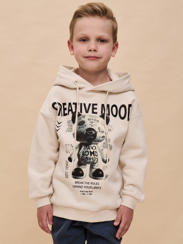 Толстовка детская из футера с начёсом для мальчика. Худи трендового оверсайз-силуэта со спущенным плечом подарит ребёнку комфорт и не будет стеснять его движений. Толстовка с капюшоном защитит от холода и ветра. Модель дополнена манжетами из эластичной рибаны по низу и рукавам. Рибана не растягивается и надолго сохраняет отличный внешний вид. Изделие неприхотливо в уходе. Толстовка на мальчика выполнена из ткани с высоким содержанием хлопка — модель мягкая, воздухопроницаемая и гипоаллергенная. Благодаря полиэстеру худи износостойкое, сохраняет форму даже после множества стирок. Изделие выполнено в универсальной расцветке, без проблем сочетается с любыми брюками, джинсами. Толстовка по переду декорирована принтом в актуальном готическом стиле, надписи переводятся: «креативное настроение», «нарушать правила», «расширяйте границы своих возможностей каждый день с 7 утра до 11 вечера», «не в настроении, не токсичный, будь радостным». Принты эластичные и устойчивые, не боятся частых стирок. Отличное худи оверсайз для мальчиков дошкольного и младшего школьного возраста, а также подростков. Джемпер подходит для детского сада, прогулок, отдыха, дома. Худи с капюшоном для мальчика подходят для круглогодичной носки. Помните о правильном уходе за изделием: рекомендуется стирать при температуре не выше 30 °C, без предварительного замачивания, с изнанки. Это поможет сохранить качество и цвет толстовки на длительное время. Не забывайте о выборе правильного размера. Используйте таблицу размеров на фотографии, чтобы выбрать подходящий вариант для вашего мальчика. Обратите внимание, что цвет товара на экране вашего устройства может отличаться от реального.