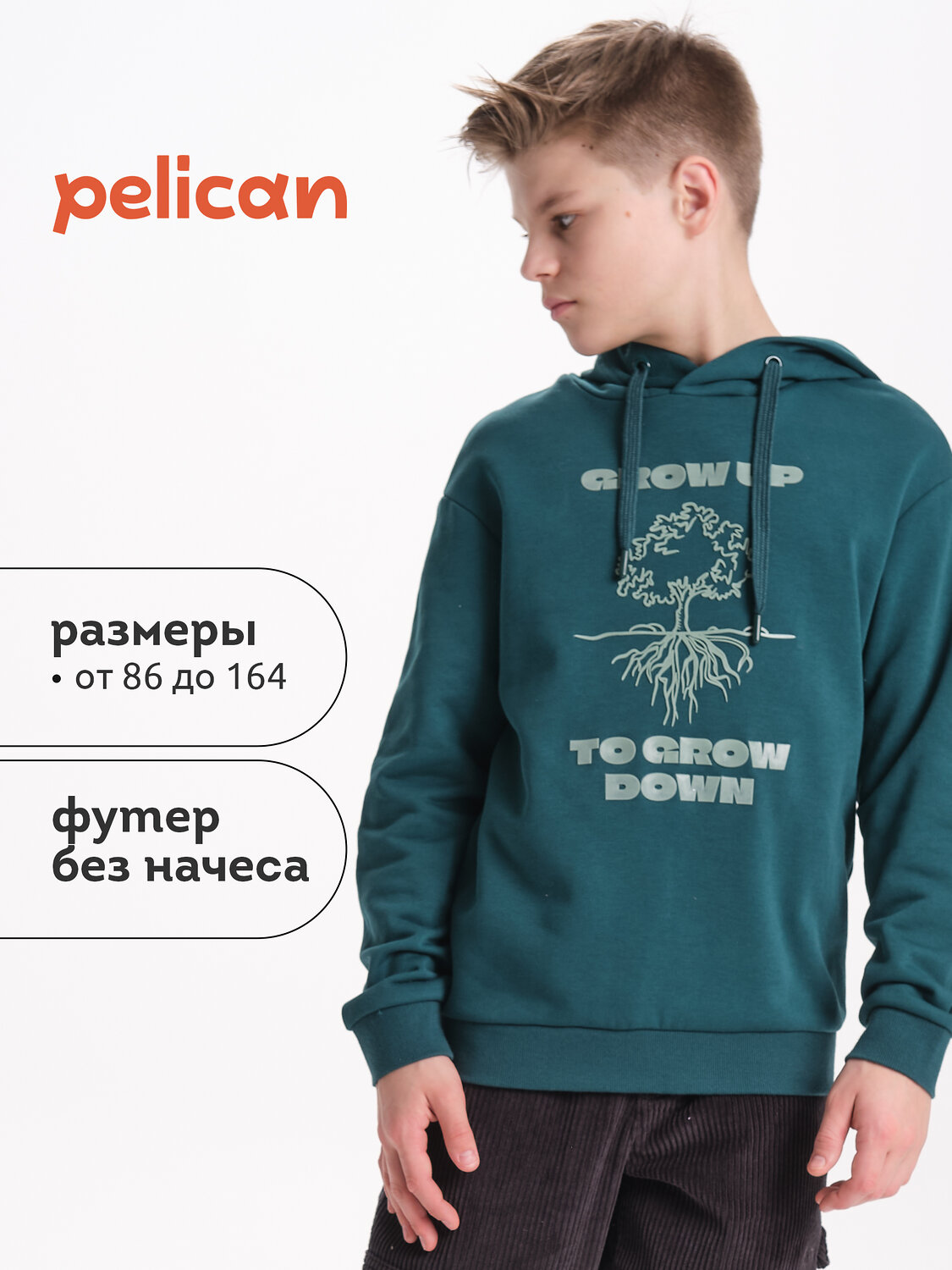 Худи для мальчика без начеса – актуальная вещь в любом сезоне, будь то весна, лето или осень. Кофта спортивная для мальчика выполнена из плотного футера-петля, который отлично согревает в прохладную погоду и при этом хорошо пропускает воздух – ребенок активно двигается, играет, не потеет. Толстовка свободного покроя оверсайз со спущенным плечом, углубленной проймой. Рукава а также низ изделия на манжете из рибаны. Кофта без карманов. Капюшон на запахе со шнурками для регулировки. Пайта для мальчика украшена по переду выпуклым резиновым принтом, а также надписью. Перевод принта "grow down to grow up" - расти вниз, чтобы вырасти вверх. Размерный ряд подходит как для малышей так и для подростков.