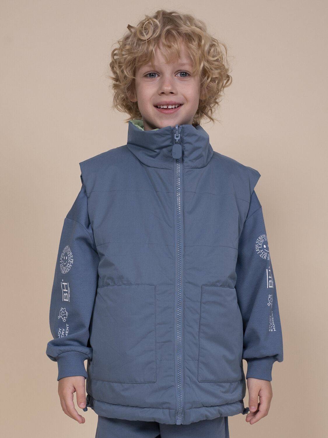 Жилет для мальчика – двусторонняя стеганая модель на синтепоне с мембраной и отталкивающим влагу покрытием. Незаменимый демисезонный вариант на весну и осень с температурным режимом +5 °C. Верхняя одежда для детей отлично защищает от ветра и осадков, позволяя активно двигаться, заниматься спортом и весело играть как в городе, так и на природе. Жилет для мальчика утепленный представлен для возраста садика и школы. Востребованная модная модель: сочетает в себе комфорт и утилитарность - понравится малышам, школьникам, подросткам. Жилет для мальчика - одежда на мембране с подкладом и утеплителем из 100% полиэстера. Мембранная ткань и водоотталкивающее покрытие «Durable Water Repellent» (DWR) хорошо защищает нижние слои одежды от намокания. Структура мембранной ткани позволяет коже дышать – ребенку тепло и уютно. Полиэстер сохраняет первоначальный внешний вид даже при активной носке. Ткань устойчива к износу, воздействиям солнечных лучей и влаги. Жилет для мальчика теплый, хорошо сохраняет форму и красивый внешний вид. Модель не сковывает движений. Жилет для мальчика – утепленная одежда длиной до середины бедра в лаконичном дизайне с элементами минимализма, с хорошей защитой от непогоды и высокой износостойкостью. Высокий воротник стойка хорошо защищает от ветра. Два больших накладных кармана с боковым входом для рук. Объем понизу регулируется шнурком со стопперами. Брендированный пуллер с софт-тач эффектом приятен на ощупь и выглядит дорого. Модель цвете на выбор: черный, джинс, темно-синий. Натуральная, базовая природная цветовая палитра, легко сочетается с любой одеждой. Размерная линейка: 3 (98): 4 (104): 5 (110): 6 (116): 7 (122): 8 (128): 9 (134): 10 (140): 11 (146). Предусмотрена стирка при температуре +30 градусов. Жилет на мальчика - отличный подарок для сына, внука, братика, племянника, крестника! Выбирайте нужный размер по таблице размеров на фото. Цвет товара на экране вашего устройства может отличаться от цвета изделия вживую.