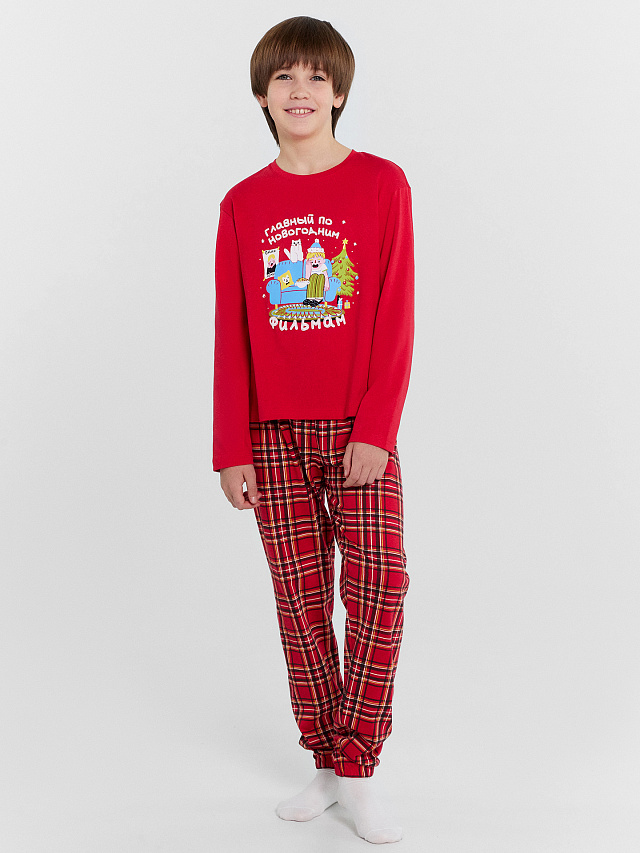 Пижама для мальчиков красная с принтом "Главный по новогодним фильмам"