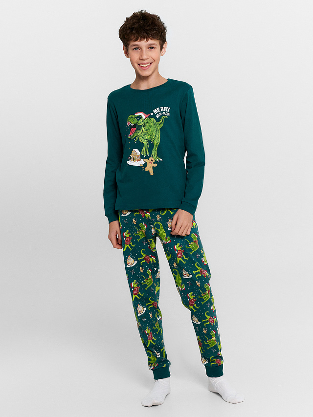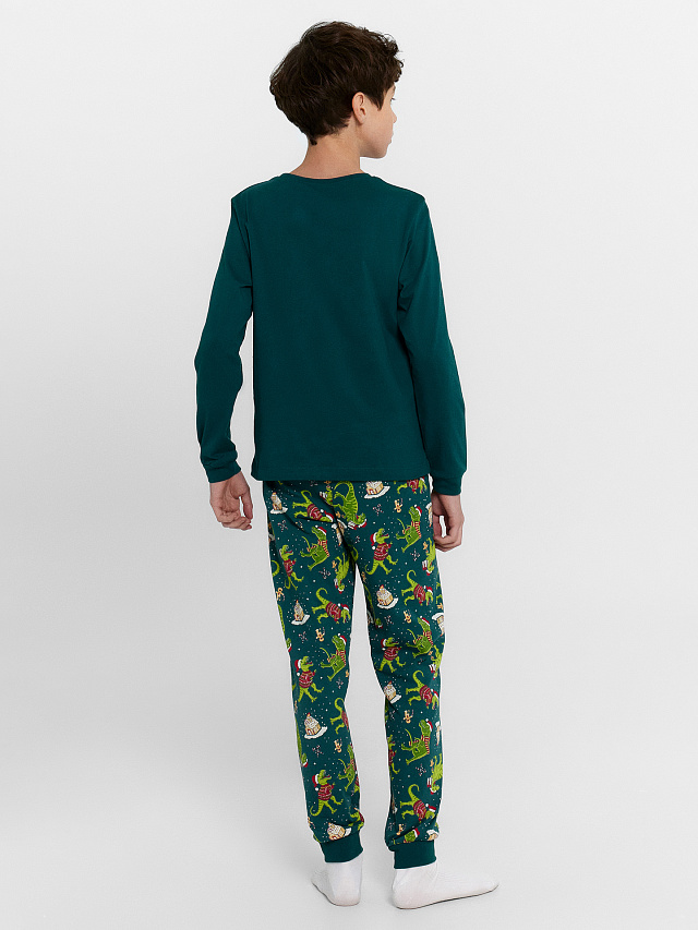 Пижама для мальчиков зеленая с новогодним принтом