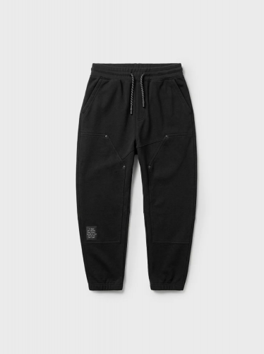 Трикотажные брюки джоггеры для мальчика подростка. Модель свободного кроя со средней посадкой. Пояс на резинке со шнуром, который можно регулировать. Спереди — два кармана с декоративными люверсами, сзади — два кармана. Брюки подойдут для повседневной носки весной и летом.