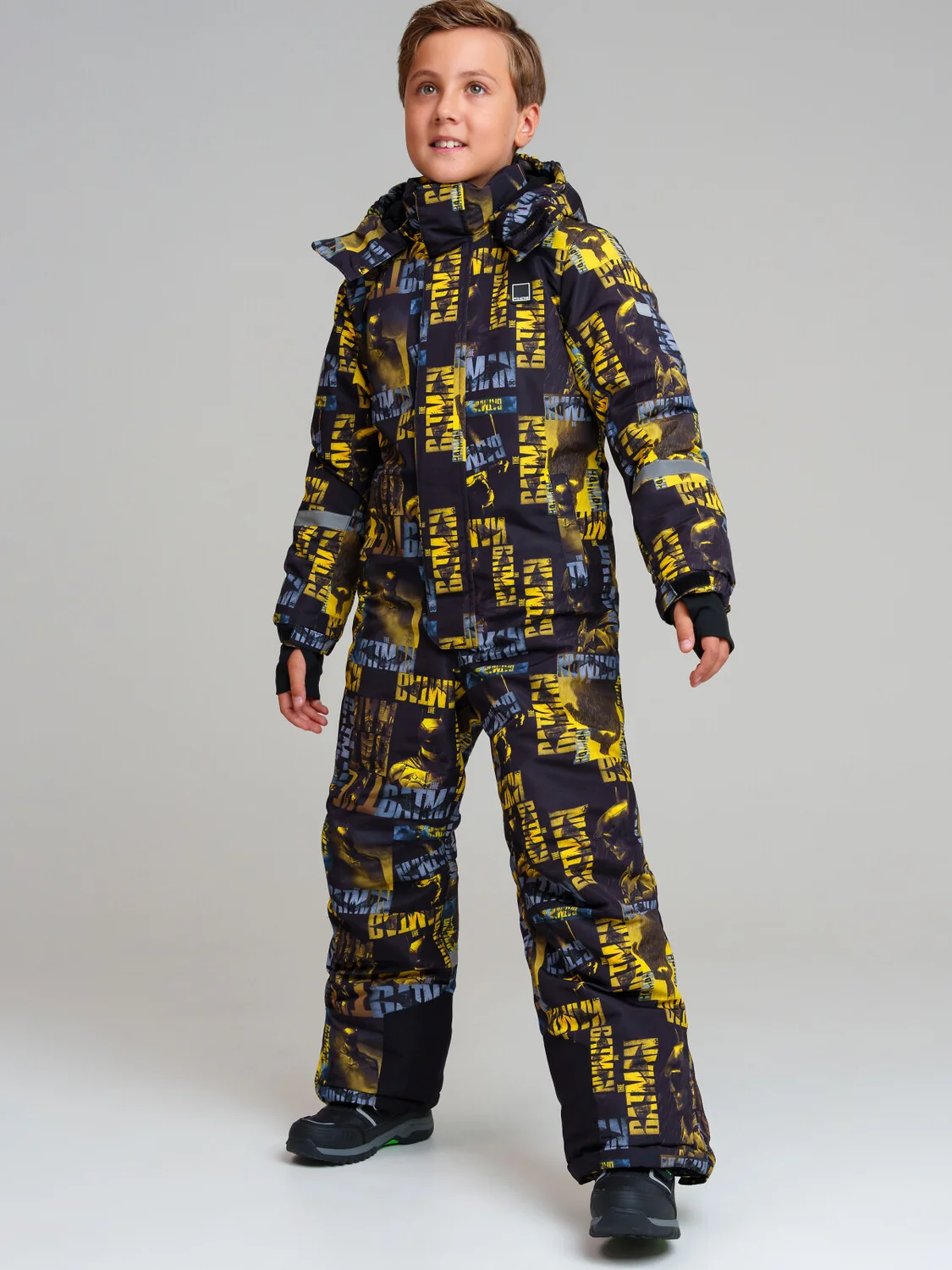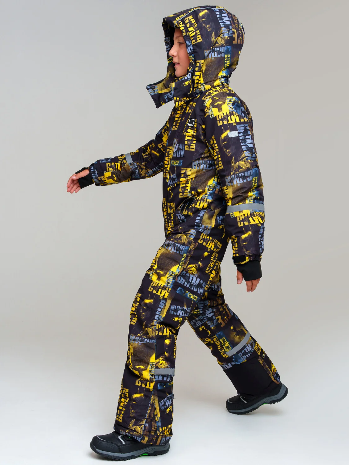 Мембранный материал делает этот яркий и модный комбинезон непромокаемым: мембрана не пропускает влагу снаружи, но выводит её изнутри, что крайне важно во время подвижных игр и занятий спортом.