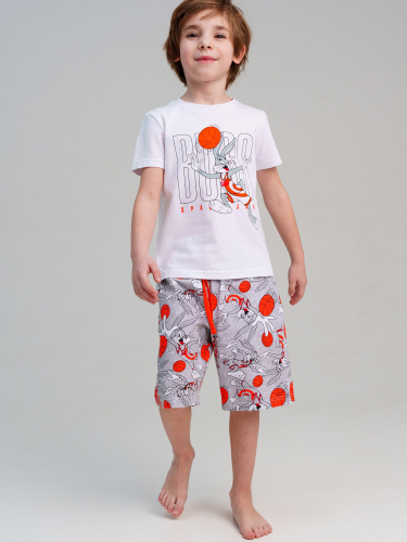 Пижама для мальчика подростка. Футболка и шорты из эластичного и приятного на ощупь трикотажа. Шорты на резинке со шнурком. Шорты с карманами в боковых швах. Высокое содержание хлопка 95%. Благодаря наличию эластана в составе ткани изделие держит форму и меньше мнется.