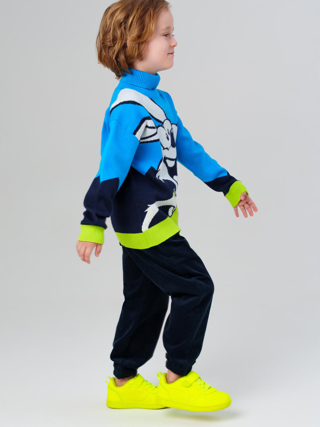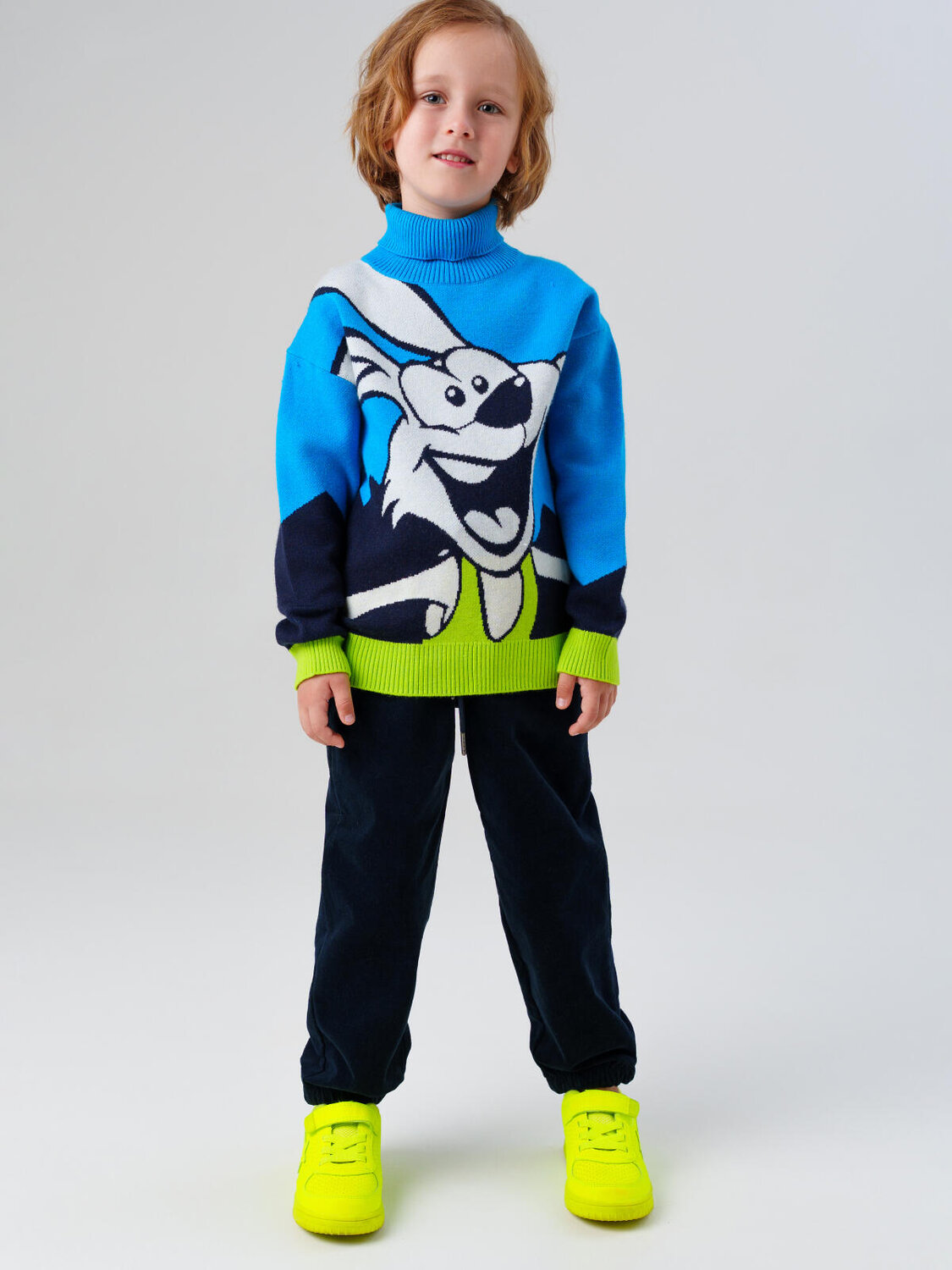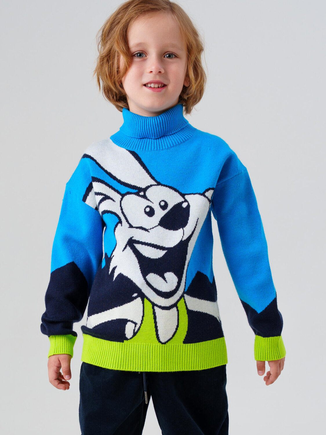 Детский синий свитер с ярким принтом для мальчика от PlayToday. Свитер выполнен из мягкого трикотажа на основе вискозы и нейлона, который приятен к телу, хорошо сохраняет форму и не вызывает раздражения. Яркий рисунок с мультяшным персонажем делает образ живым и запоминающимся.