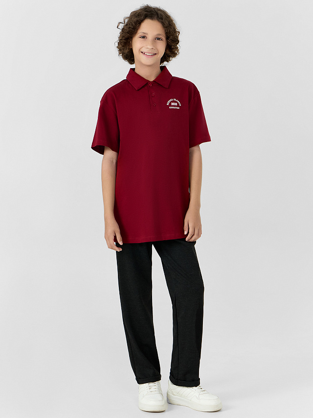 Футболка поло в школу для мальчика с коротким рукавом — это идеальный баланс строгости и комфорта для повседневной носки. Модель свободного силуэта без швов на плечах и спине обеспечивает активному ребенку полную свободу движений. Классическая застежка «поло» на три пуговицы и воротник-стойка подчеркивают аккуратный школьный стиль. Спущенное плечо и рукав не сковывают движения, а аккуратная обработка низа гарантирует долговечность и опрятный вид даже после множества стирок.