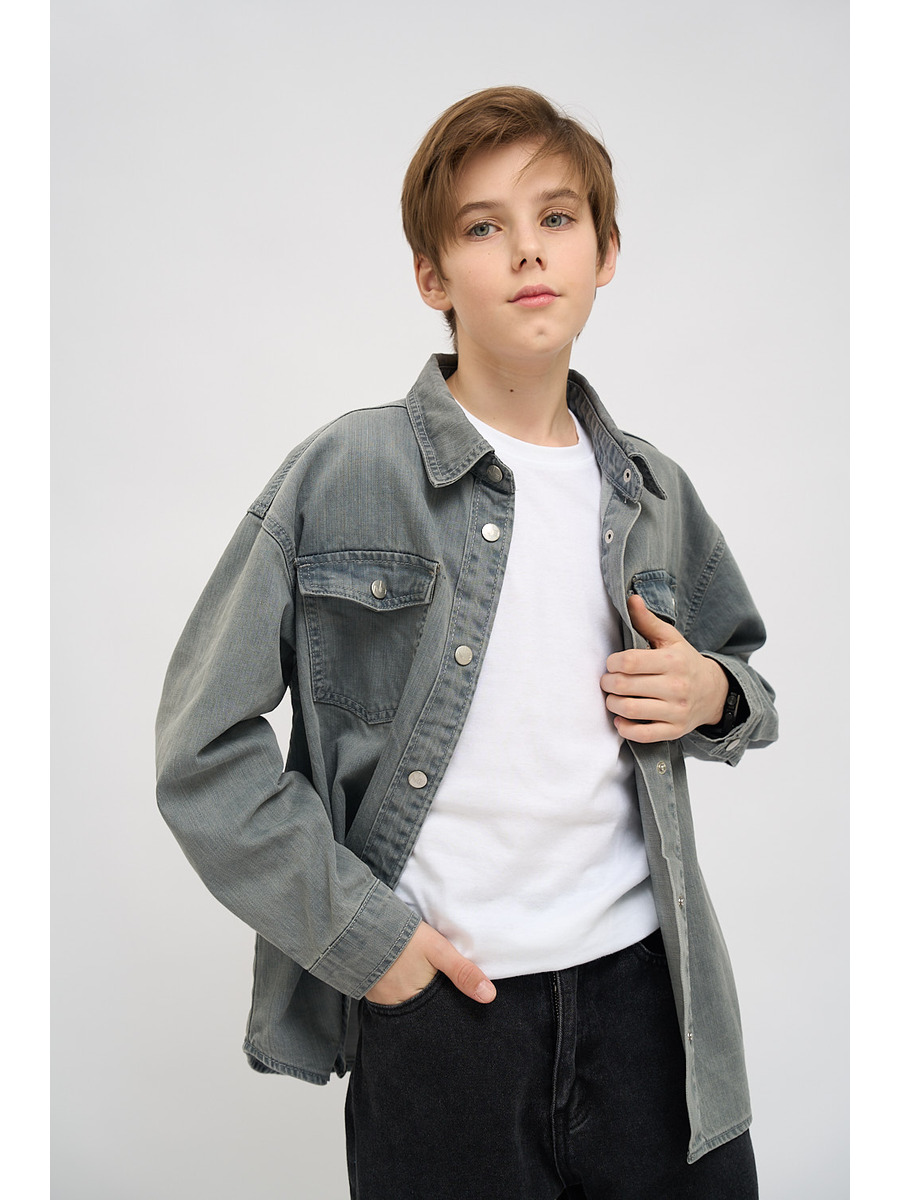 Универсальная джинсовая рубашка для мальчика свободного кроя выполнена из качественного хлопка. Дышащий материал рубашки обеспечит ребенку комфорт и удобство каждый день. Стильная рубашка имеет оверсайз фасон, поэтому не сковывает движений. Два кармана спереди. серый