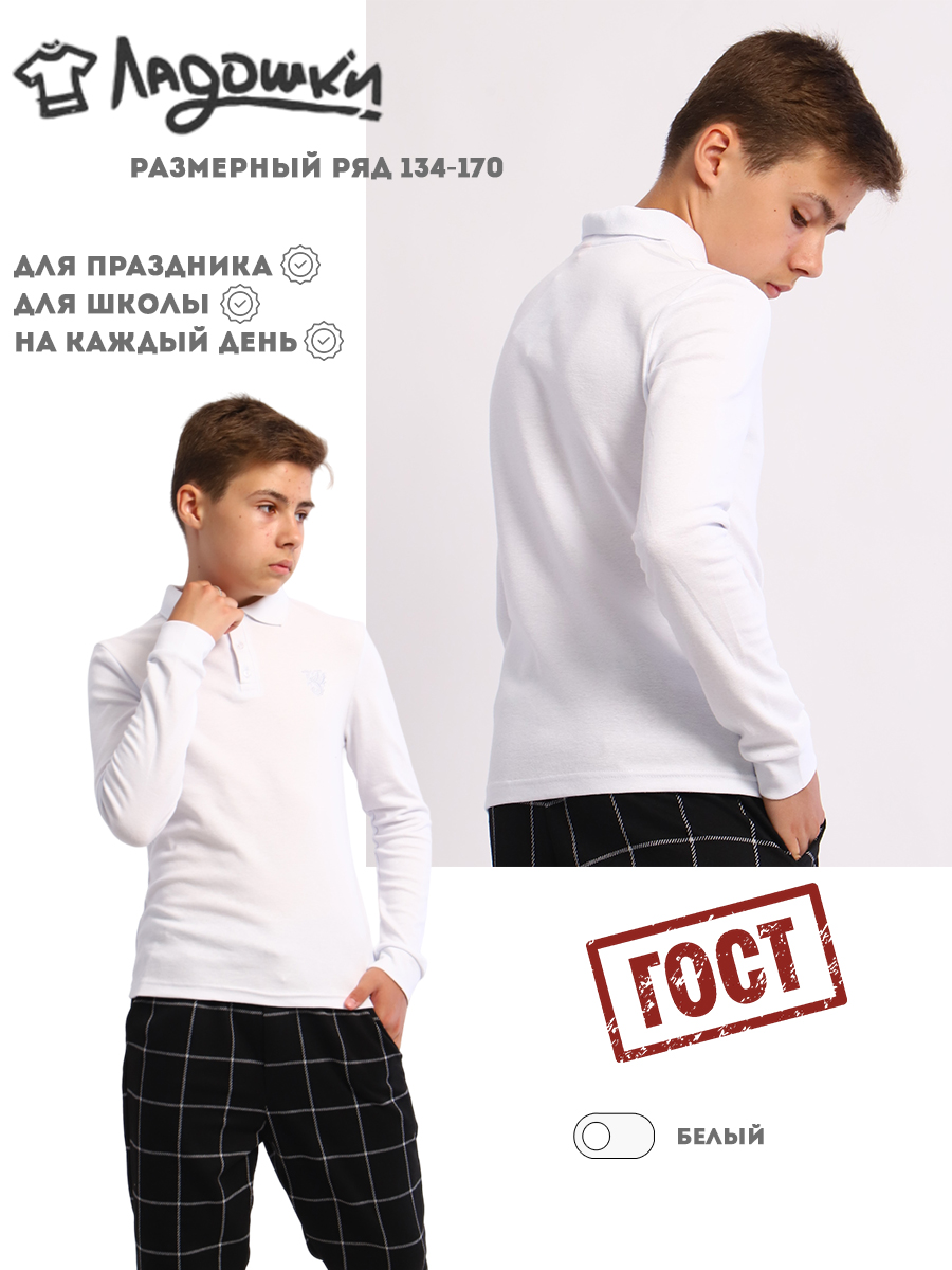 Белая школьная рубашка - поло для мальчиков и девочек-подростков. Отличный базовый вариант школьного лонгслива! Эластичный высококачественный трикотаж школьной рубашки не стесняет движений. Натуральный состав белой школьной кофты для уроков обеспечивает комфорт. Рукава поло длинные с манжетами. На груди вышивка - Георгий Победоносец. Его изображение настроит наших учеников на победы в учебе! Детский приталенный лонгслив идеально подойдет в качестве школьной формы, на торжество как нарядная одежда и на каждый день. Отличный подарок для подростков . Подростковый лонгслив отлично сочетается с классическими брюками и джинсами, а для девочек с любым низом. Школьная одежда, форма должна быть комфортной и удобной как эта кофта для мальчиков. Школьная рубашка из трикотажа комфортно сидит, обеспечивает удобство и комфорт на уроках. Школьное поло пригодится и как повседневная деловая одежда. Белая одежда всегда дополняет торжественный праздничный наряд. Поэтому трикотажная рубаха для подростков пригодится на праздник, такой как новый год или 23 февраля. Подходит для последнего звонка и на выпускной.