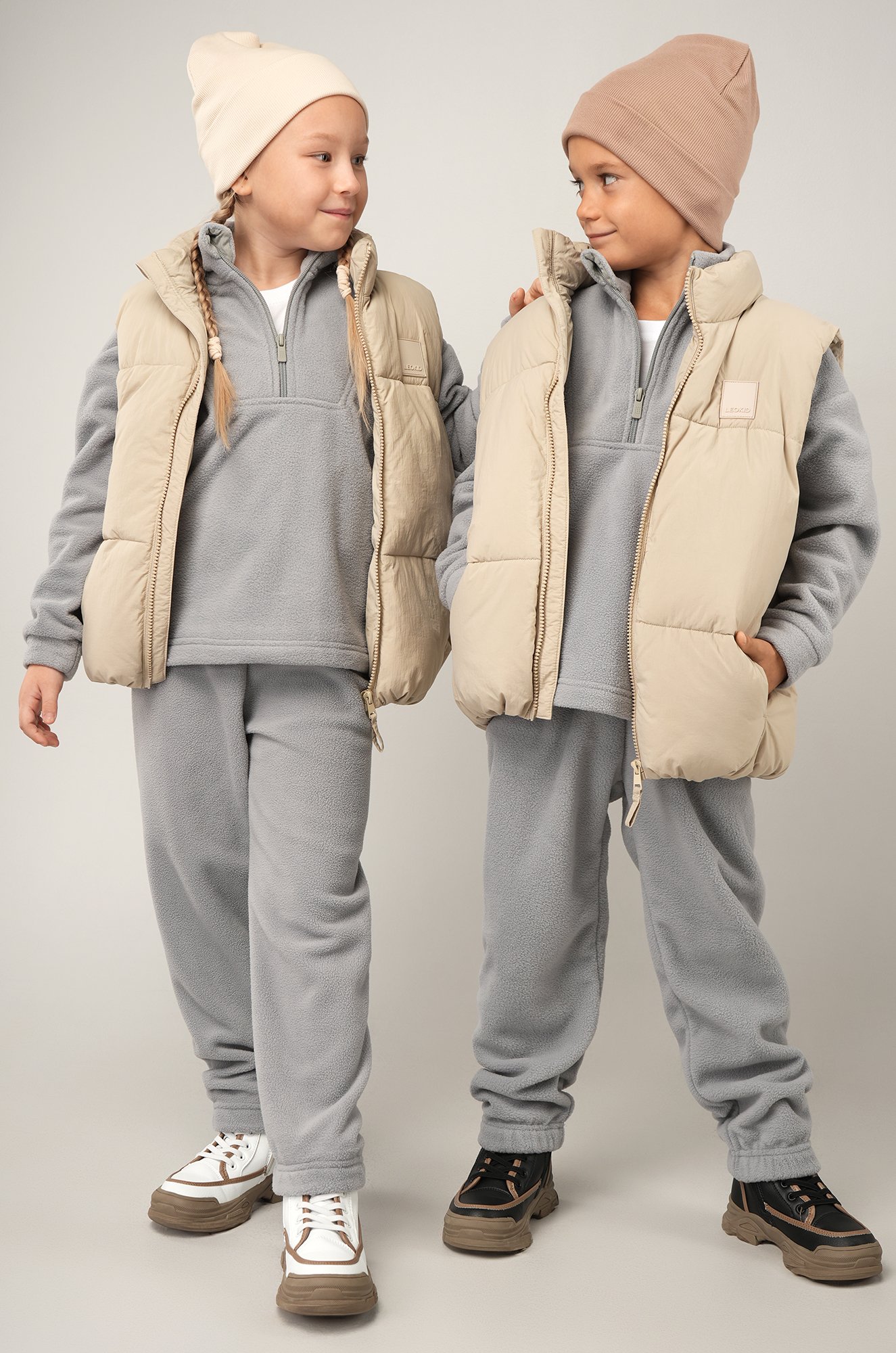 Светло-серый детский костюм для мальчиков и девочек создан, чтобы зима проходила тепло и комфортно. Флисовый костюм выполнен из плотной мягкой ткани, которая бережно сохраняет тепло и приятно ощущается на теле.