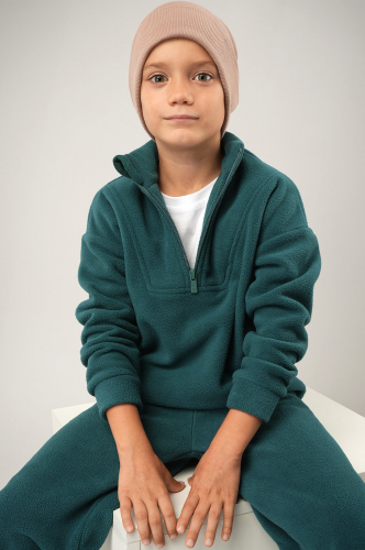 – удобная толстовка со воротником стойкой и короткой молнией;
