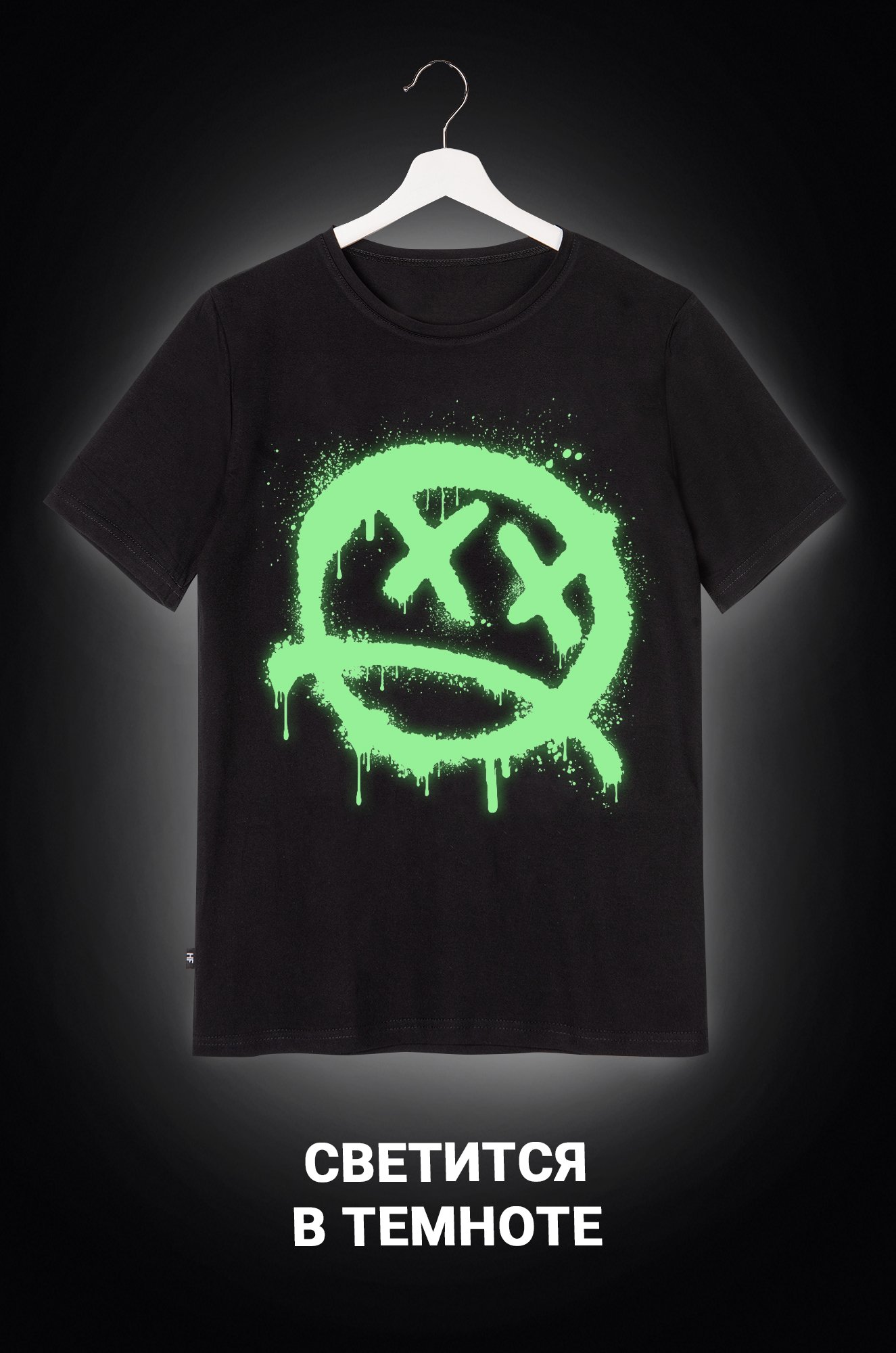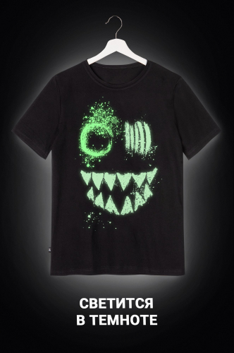 Благодаря свободному прямому крою футболка не стесняет движений. Удобная круглая горловина не сдавливает шею, а аккуратные плоские швы не ощущаются во время активного дня. Чтобы оригинальный рисунок светился в темноте, нужно хотя бы пару минут подержать его на солнечном свете или под яркой лампой.