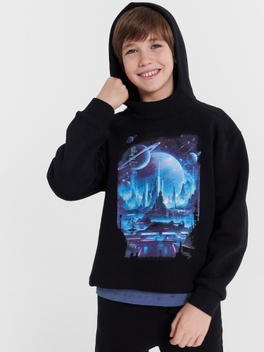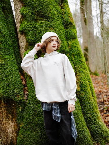 Свитшот для мальчиков свободного силуэта с длинными рукавами, манжетами и спущенной линией плеча. Круглый вырез горловины добавляет удобства и стильности, делая эту модель отличным выбором для повседневного ношения. Изделие выполнено из футера без подчеса - мягкого и дышащего материала, который хорошо сохраняет форму и устойчив к износу. Футер обеспечивает комфорт во время носки, не перегревая и позволяя коже дышать. Сочетайте этот свитшот с подходящими брюками из этой же коллекции для создания стильного и гармоничного спортивного комплекта.