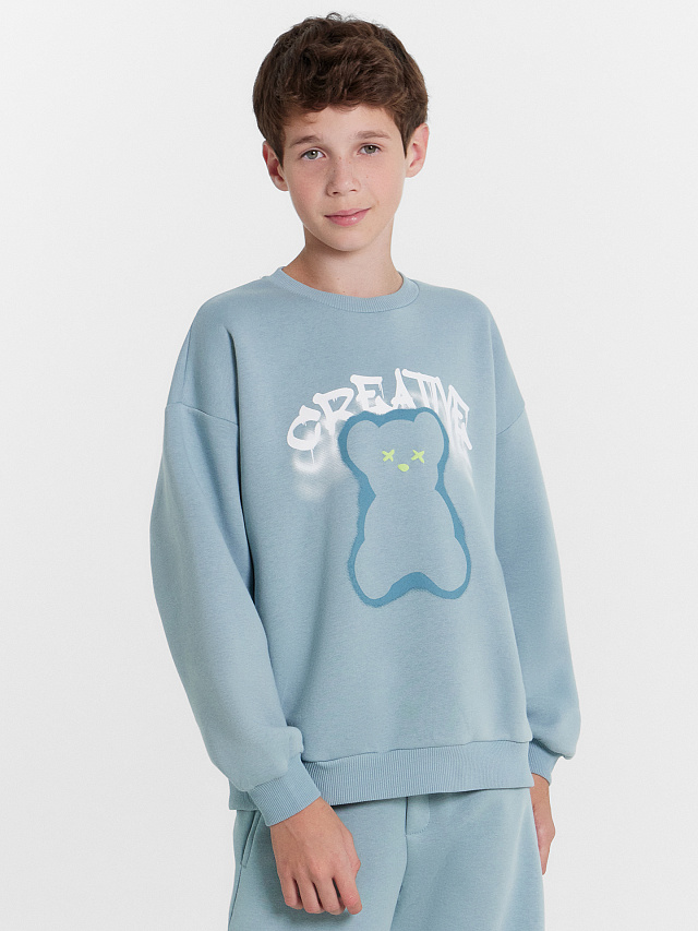 Стильный свитшот для мальчиков выполнен из футера с подчесом. В составе изделия - высококачественный хлопок. Модель свободного силуэта. Горловина округлой формы из рибаны. Рукава втачные, длинные, с отрезными манжетами. По низу джемпера отрезной пояс. Комфортный и уютный вариант для создания лаконичных городских образов. Дополнить такой детский джемпер можно стильным низом из детской базовой линейки одежды. Широкий размерный ряд. Рекомендуем!