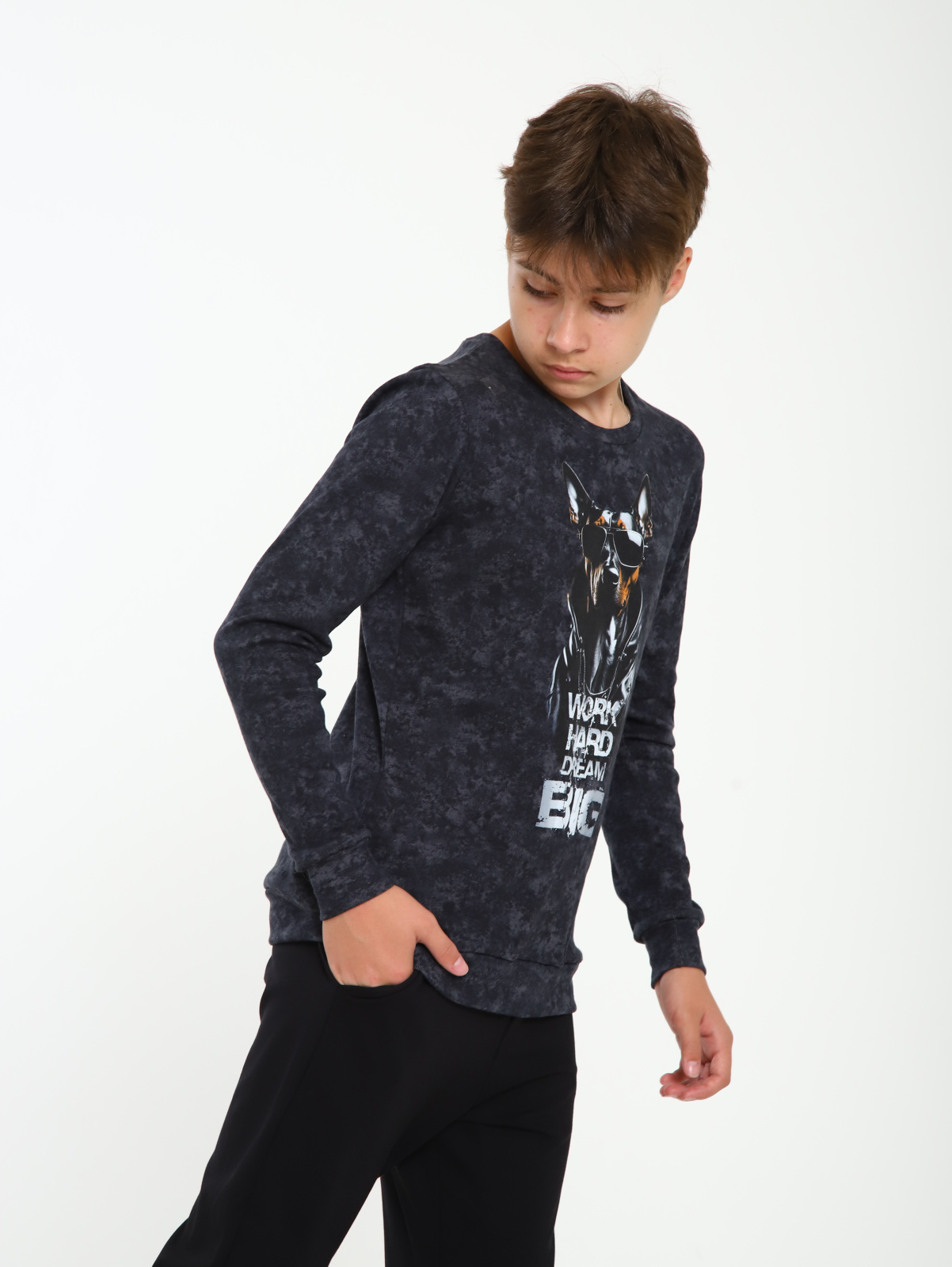 Свитшот для мальчика подростка с теплым начесом внутри. Кофта для подростка с рисунком добермана будет отличным дополнением гардероба. Кофта для мальчика имеет идеальную посадку на фигуре. Свитшот черный, это делает его универсальным и стильным. Детский джемпер из натурального хлопкового трикотажа на флисе, который обеспечивает комфорт и мягкость на протяжении всего дня.