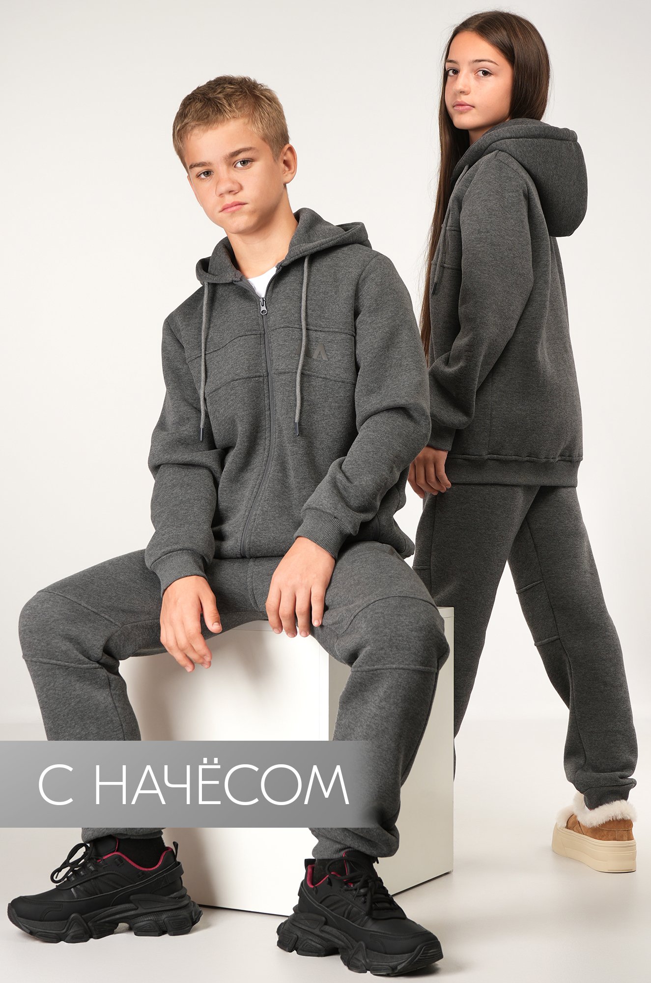 Тёплый спортивный костюм для детей — это находка для активных прогулок и игр! Темно-серый однотонный цвет делает комплект универсальным для мальчиков и девочек, а мягкий трикотаж с начёсом дарит уют и комфорт. Утепленный детский костюм двойка станет любимым вариантом на осень, зиму и весь демисезонный период.