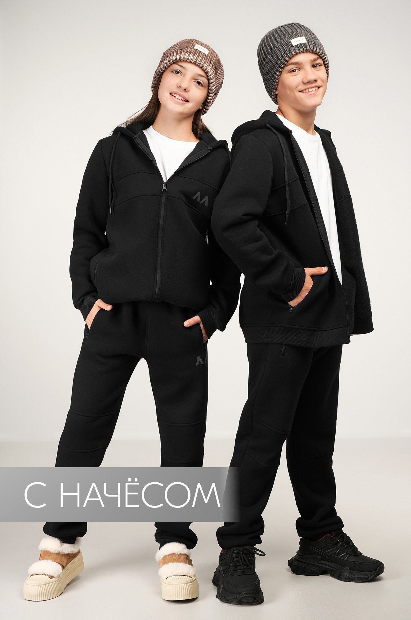 Тёплый спортивный костюм для детей — это находка для активных прогулок и игр! Черный однотонный цвет делает комплект универсальным для мальчиков и девочек, а мягкий трикотаж с начёсом дарит уют и комфорт. Утепленный детский костюм двойка станет любимым вариантом на осень, зиму и весь демисезонный период.