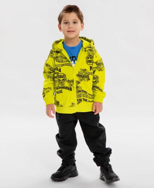 Яркая толстовка на молнии с капюшоном и карманами. Эта удобная и практичная вещь станет незаменимой в гардеробе малыша. Худи сделано из высококачественного материала - 95% хлопка и 5% эластана. Такой состав обеспечивает комфорт и долговечность изделия. Капюшон на резинке для утяжки обеспечит защиту от ветра, солнца и посторонних взглядов. Салатовый цвет и шрифтовый принт придадут образу ребенка эффектности. Худи на молнии с капюшоном - это универсальная вещь, которую можно носить как на каждый день, так и на прогулке или в спортивном зале.