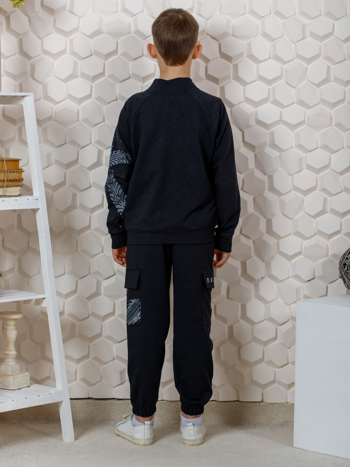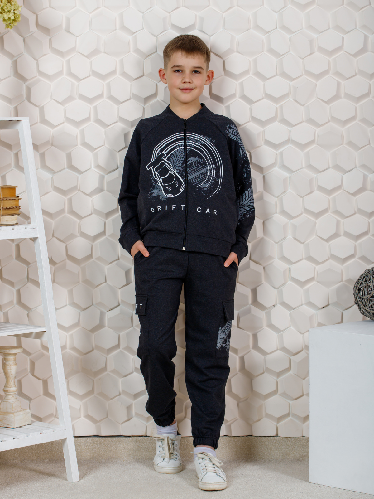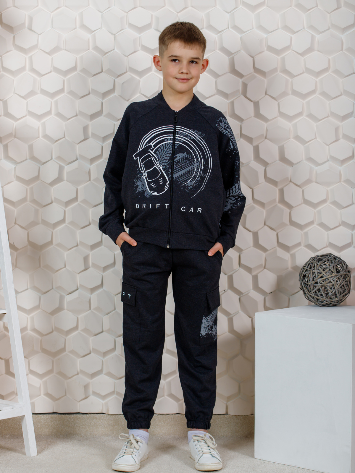 Олимпийка прямого кроя на молнии, с принтом, боковыми карманами, рукава с манжетами.