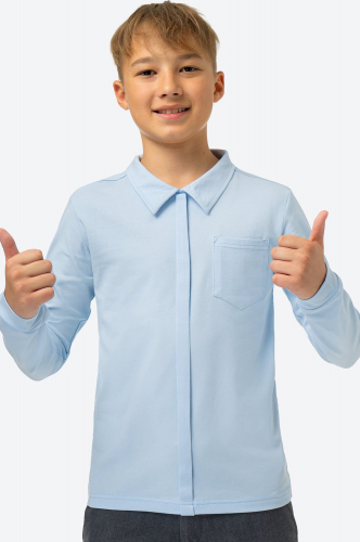 Ключ к стильному школьному образу найден! Детская рубашка для мальчиков и мальчиков-подростков из приятного к телу хлопка станет отличным дополнением к школьной форме. Строгий отложной воротник, длинный рукав с манжетами, акцентный нагрудный карман – эта голубая рубашка для детей точно поможет выделиться среди сверстников!