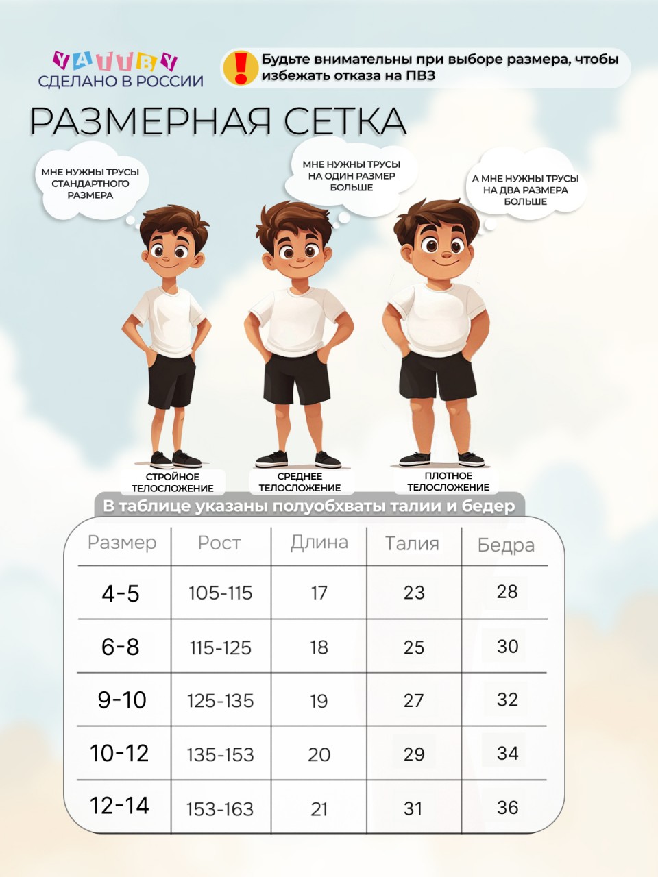 Набор хлопковых боксеров для мальчика станет идеальным выбором для повседневной носки и активного времяпрепровождения. В комплекте 4 шт. удобных трусов с принтом из органического хлопка, каждая из которых отличается средней посадкой и обеспечивает максимальный комфорт в течение дня. Изготовленные из гипоаллергенного материала, они безопасны для кожи и подойдут даже детям с чувствительной кожей.Боксеры для мальчика выполнены из мягкой приятной ткани с использованием экологичных красителей, что делает их не только комфортными, но и безопасными. Благодаря плоским швам трусы для мальчика не натирают кожу во время активных движений, а эластичная резинка надежно фиксирует белье на талии без давления или дискомфорта. Эти трусики для мальчиков идеально подходят как для школы, так и для занятий спортом или прогулок.Детская модель создана с учетом анатомических особенностей мальчиков и подростков разного телосложения — комфорт гарантирован как худым, так и полным детям. Набор трусов для мальчика 4 шт. обеспечивают свободу движений, делая их универсальными для любой активности: от повседневной носки до спортивных тренировок. Российское производство гарантирует высокое качество изделия и соблюдение всех стандартов. Хлопковый материал обеспечивает хорошую вентиляцию, что особенно важно в летний сезон. Комплект подходит как д ля высоких детей, так и для невысоких подростков благодаря продуманному дизайну.Это удобное белье станет отличным подарком к любому случаю благодаря стильному дизайну с яркими принтами. Мягкая ткань сохраняет свою форму даже после многочисленных стирок, а цвет остается ярким благодаря устойчивым краскам. Комфортная модель прекрасно впишется в гардероб любого ребенка, даря уверенность в себе каждый день.Если вы ищете качественное детское белье с продуманным кроем — этот комплект станет вашим выбором!