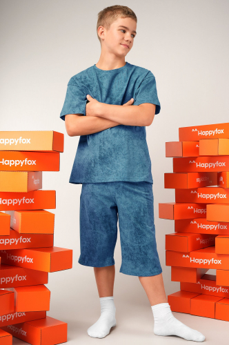 Домашний костюм для мальчика подростка с эффектом винтаж создан для уюта и расслабления. Костюм с шортами идеален для тех, кто ценит свободу движений и комфорт.