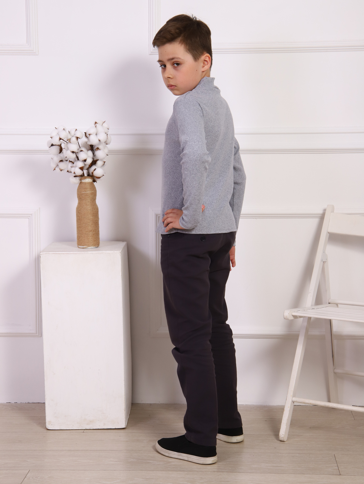 Подростковый лонгслив с воротником-стойкой и длинными рукавами.