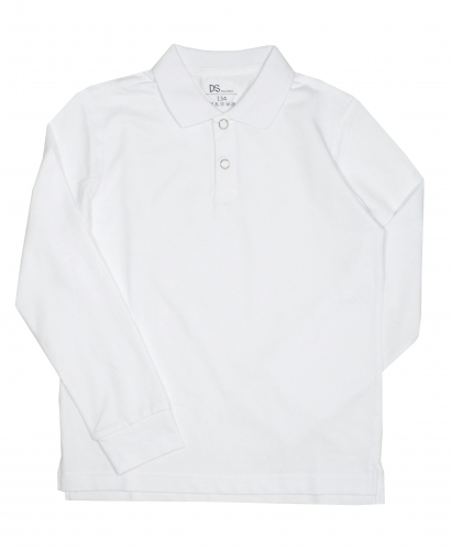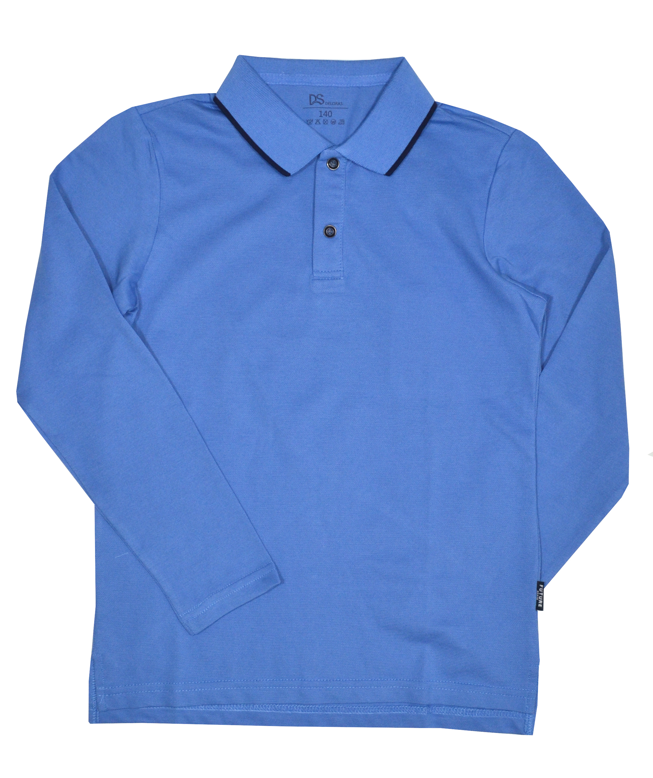 Классическое поло с длинным рукавом для мальчика.Застежка на кнопки, по виду похожие на пуговицы. Ткань нового поколения, простая в обращении с гидрофобным покрытием. Покрытие противостоит жидкостям, т.е. жидкость скатывается с поверхности, отталкивает воду.  Воротник из плотного трикотажа.