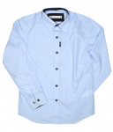 Классическое поло с коротким рукавом для мальчика. Застежка на кнопки. Ткань нового поколения, простая в обращении с гидрофобным покрытием. Покрытие противостоит жидкостям, т.е. жидкость скатывается с поверхности ткани.  Воротник и манжет рукава из плотного трикотажа с отделкой белого цвета.
