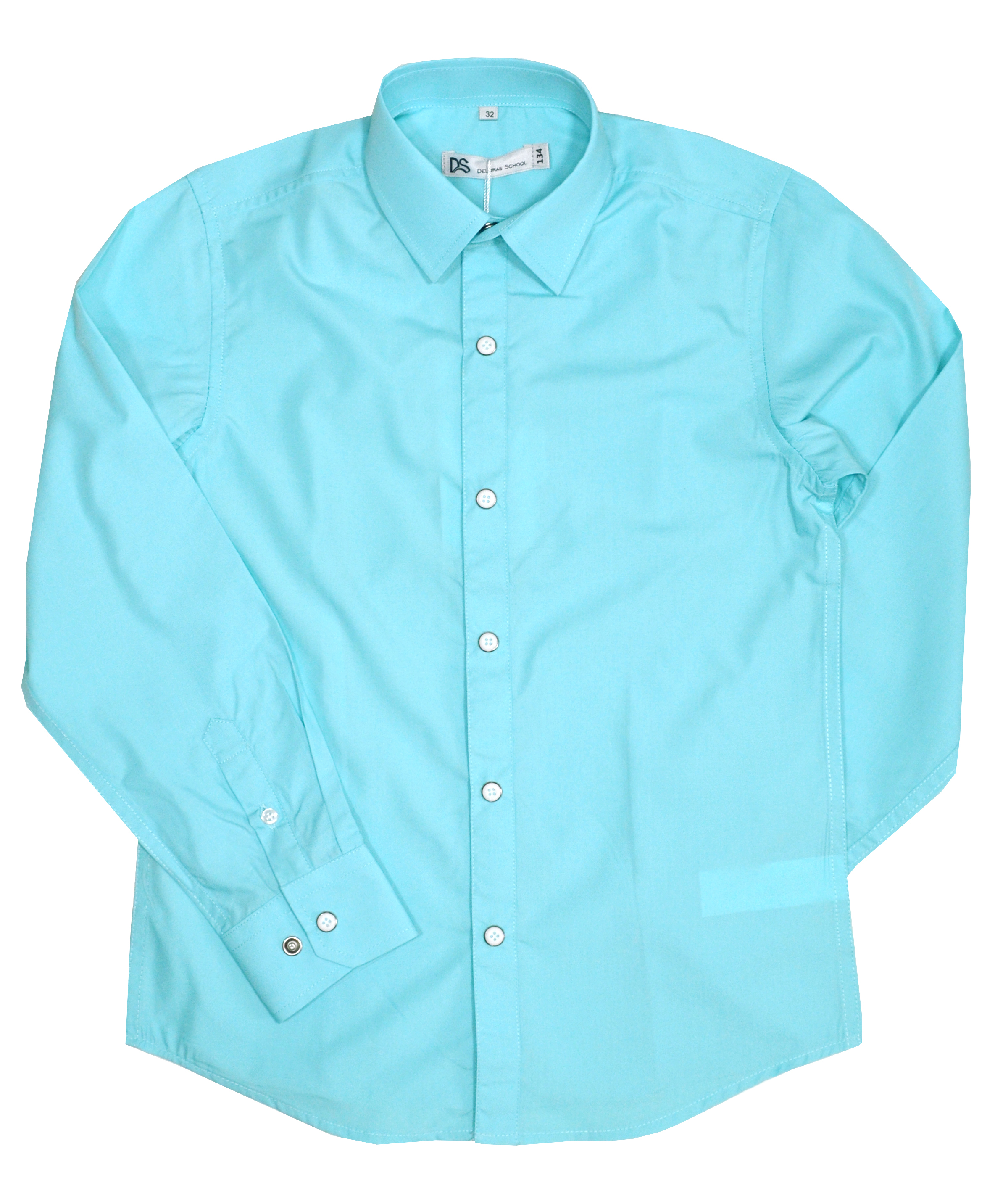 Классическая рубашка для мальчика. Застежка на кнопки, по виду похожие на пуговицы. По спинке вытачки.  Материал высокого качества, гладкий и плотный, не просвечивает.