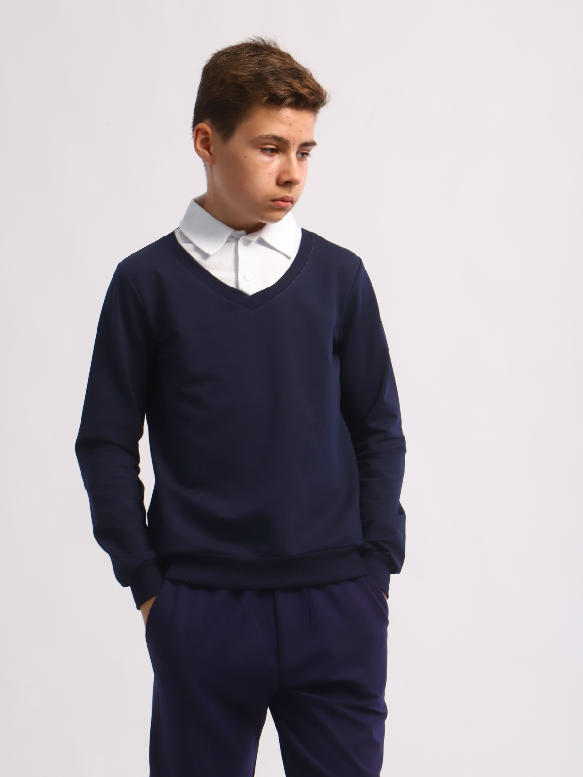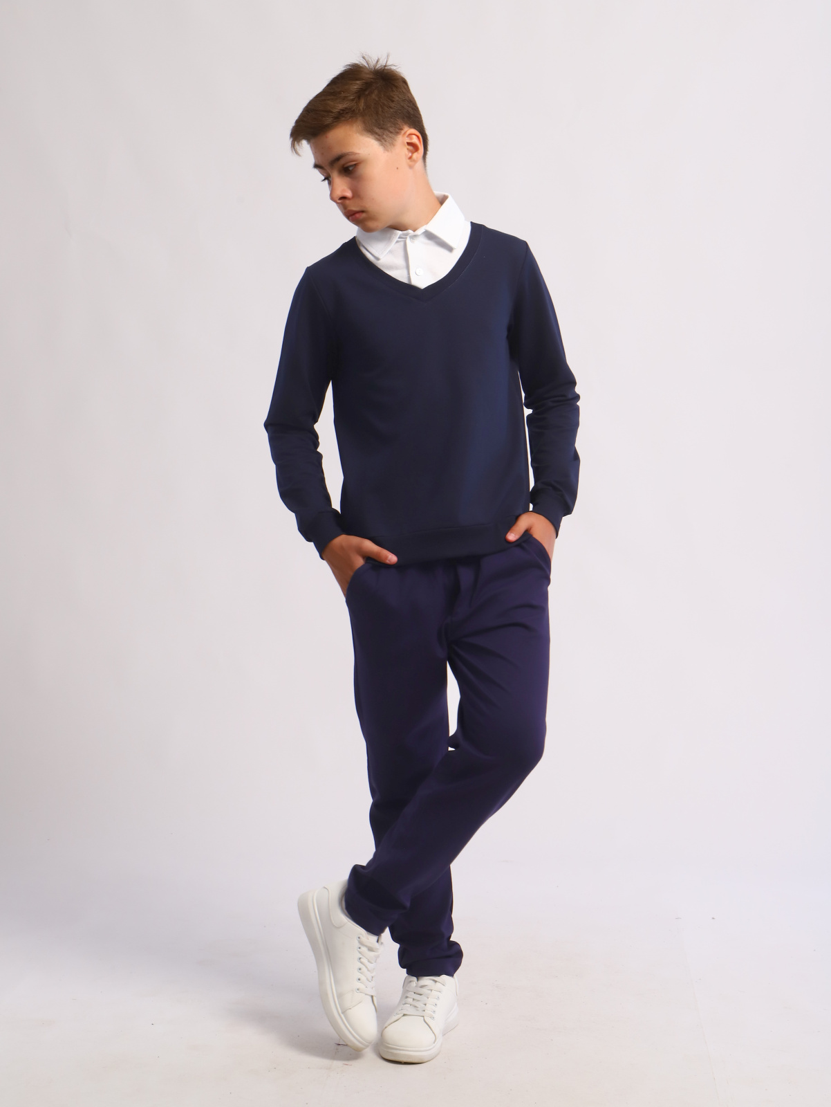 В такой обманке ребенку будет удобно и комфортно. Школьный джемпер можно носить с классическими брюками, джоггерами, спортивками, трико, бриджами, костюмом, пиджаком.